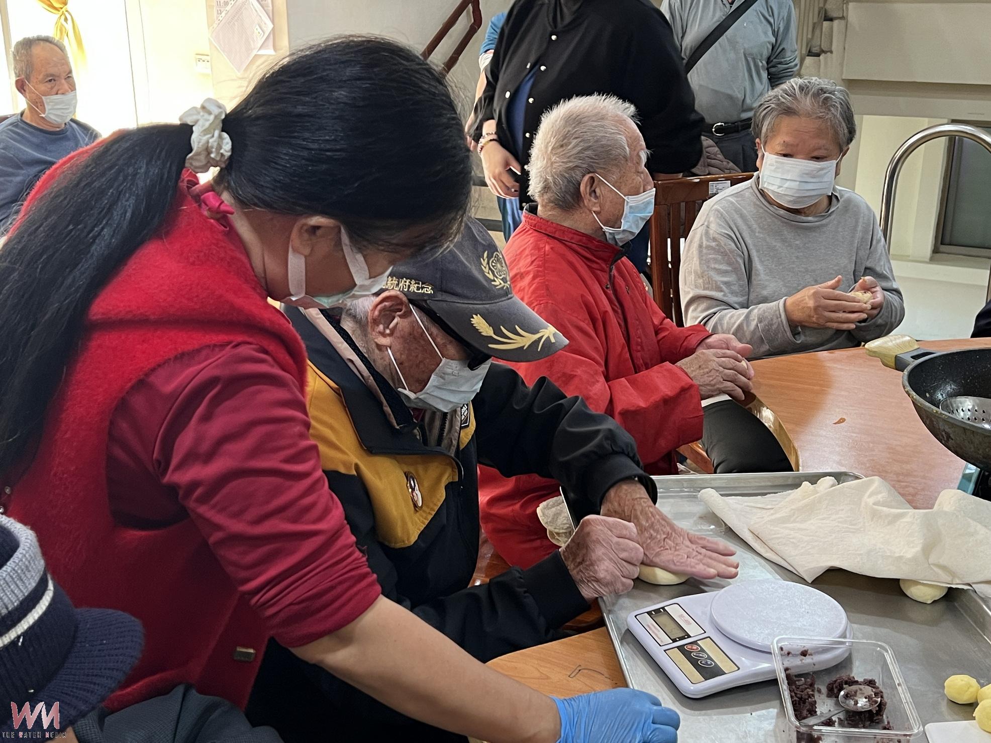 現場氣氛溫馨而熱鬧,有長輩一邊揉麵糰一邊輕聲哼著過年的老歌,也有長輩看著自己親手完成的紅豆奶酥麵包,眼睛閃著光說「好香,好像回到過年跟家人一起準備點心的時光」,笑聲與香氣交織,讓整個房舍都充滿溫暖。