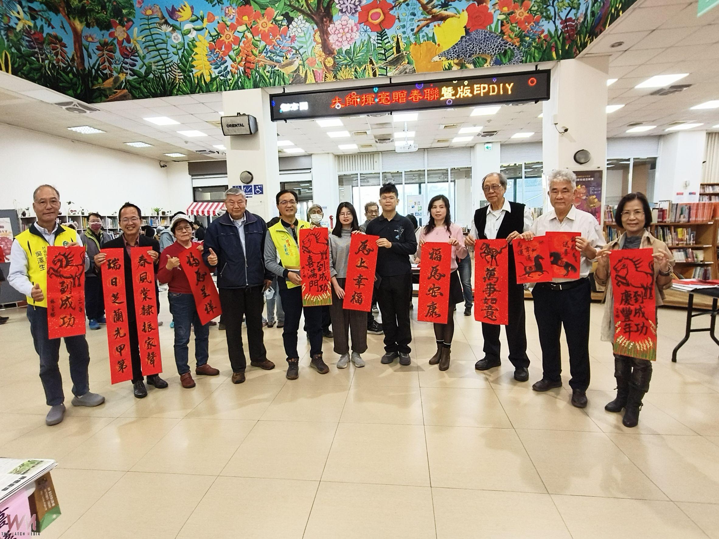 市立圖書館館長李逢時指出,今年延續往年辦理春聯揮毫活動,並結合紅包拓印DIY,特別邀請郭老師到場指導版印體驗,活動主題為「銀駒送喜」、「馬運亨通」,深受民眾喜愛,其中拓印DIY更是小朋友最愛,現場氣氛熱絡。