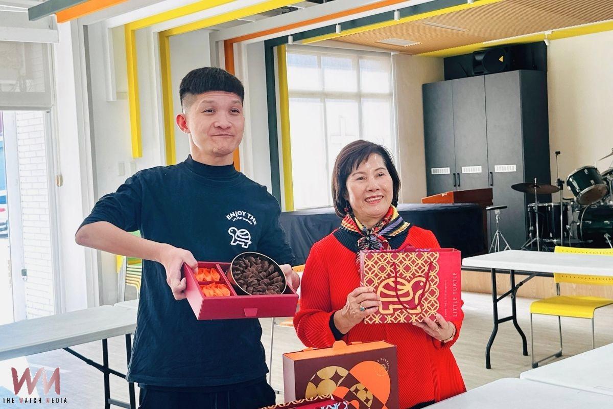 林盟凱老闆贈禮給協會成員。(圖/小烏龜烘培提供)