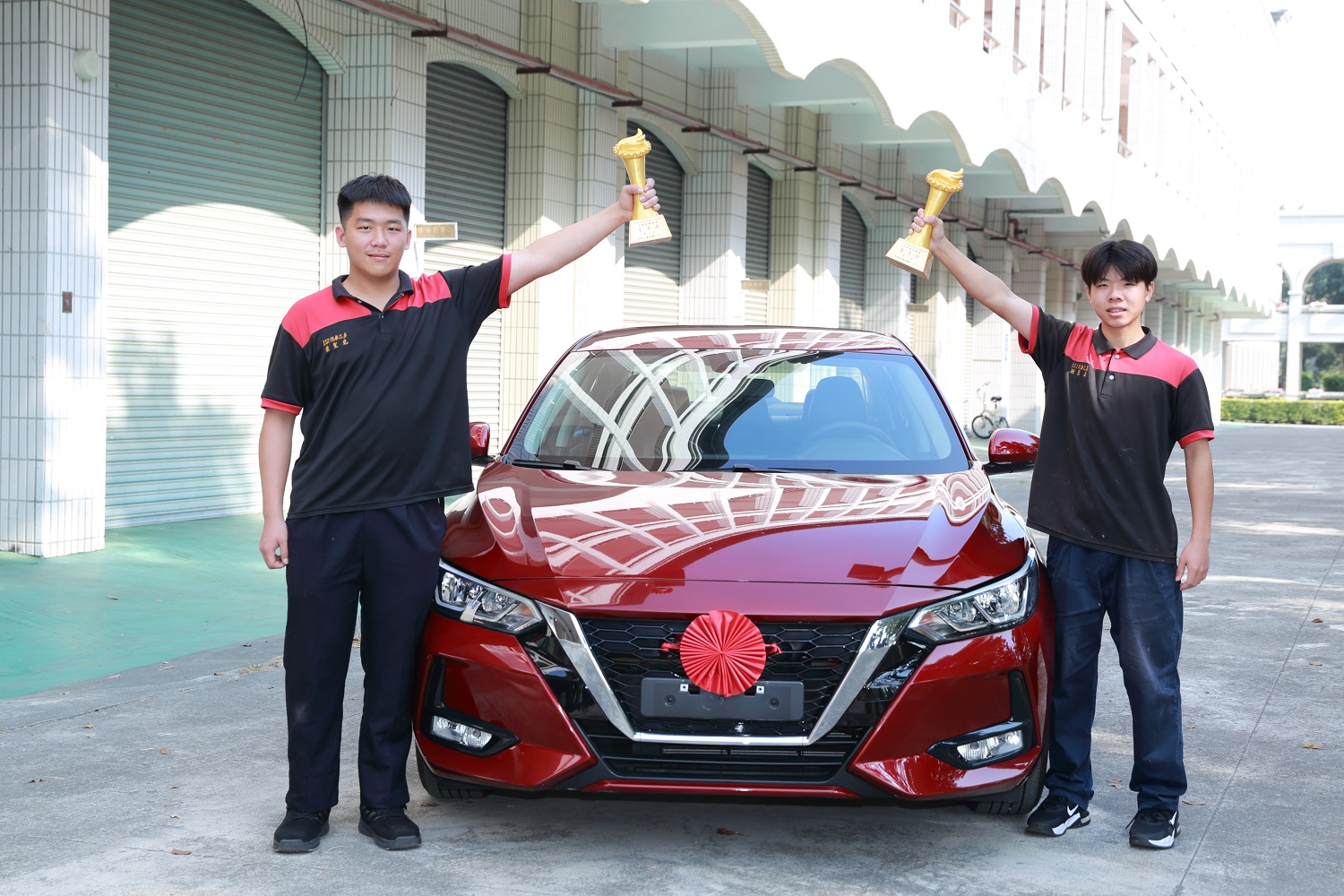 汽車科金手獎第二名黃聖堯(右三)獲捐汽車一台,將作為學校實習車使用。(圖/民雄農工提供)