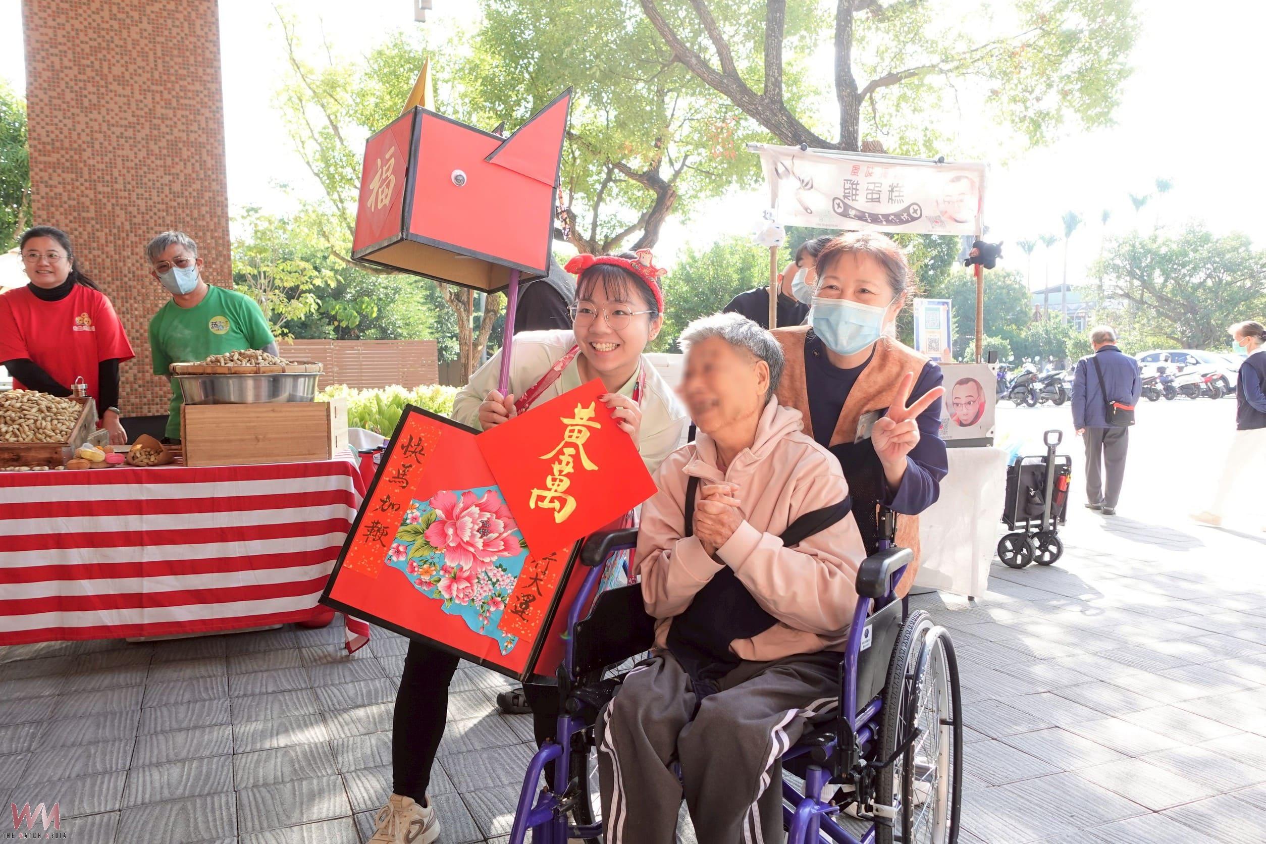 機構人員穿著喜氣的「福氣馬」造型裝飾,九點正式領頭巡禮,帶住民長輩逛街採買、發送春聯給各攤位。85歲謝奶奶由志工推著輪椅,慢慢逛街,挑選愛吃的食物,眼神透著過節的滿足;75 歲林奶奶與家人聚在一起用餐點,林奶奶開心表示:「很熱鬧,很有過年氣氛。」兒子林先生每天都到機構探望母親,他指出,媽媽入住機構已一年多,很喜歡溫馨安穩的環境,家屬很安心。