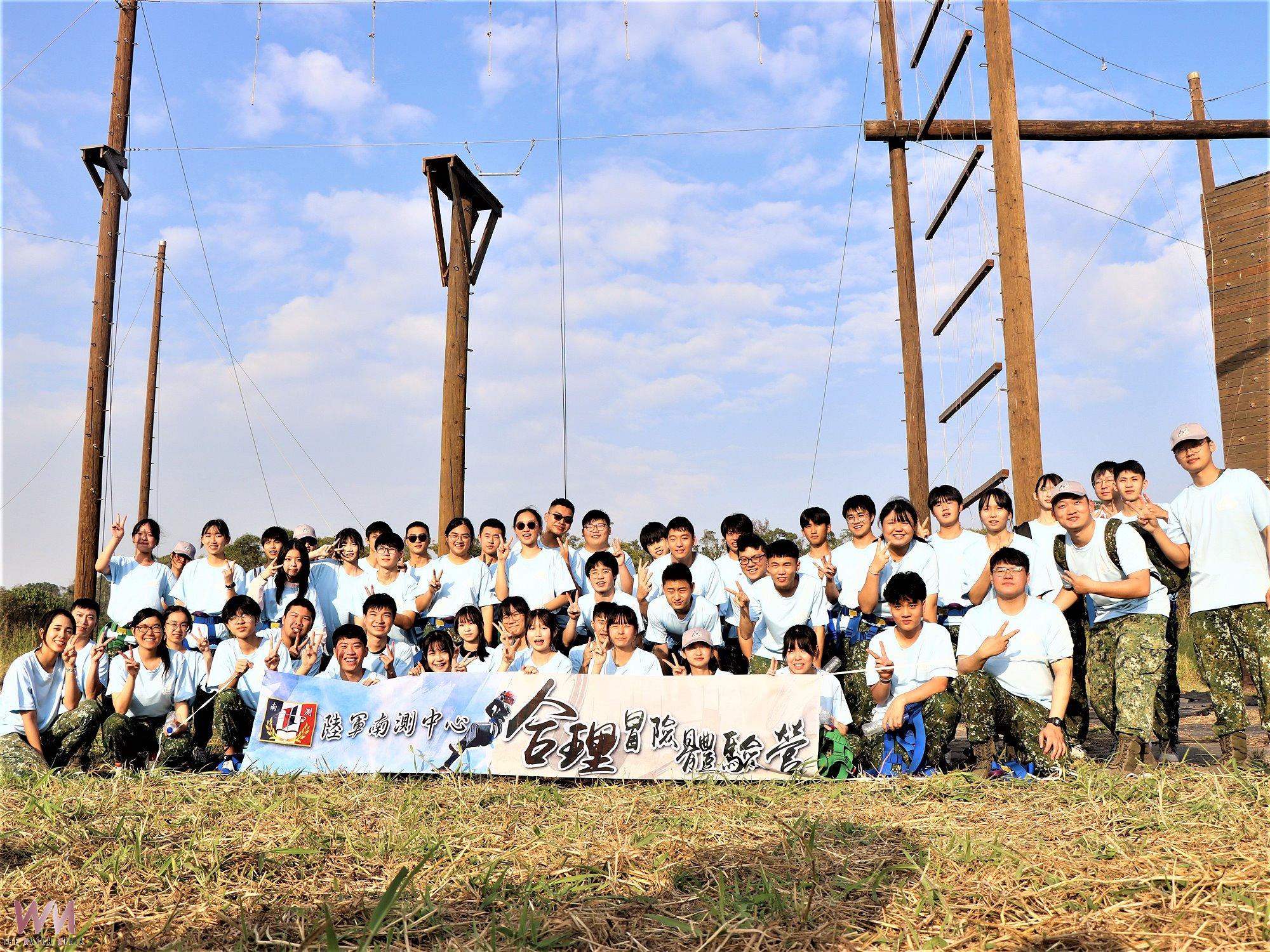 本次營隊課程,上午除安排「裝備陳展」、合成化模擬器操作與震撼十足的「雲豹甲車試乘」,讓學員近距離感受國軍精實戰力外;下午更利用中心特有的「合理冒險」訓練場地,從攀岩、獨木橋、高跳臺與滑索等各類高低空設施體驗,引導學員在團隊合作中突破心理障礙,培養膽識與解決問題的能力,整體內容豐富而多元;而在各項高空或體能操作中,譚勇指揮官特別叮嚀學子,務必確遵教官指導,在「安全第一」的前提下享受冒險樂趣。