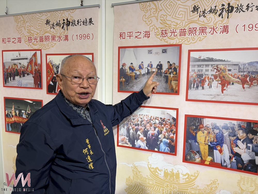 (觀傳媒嘉義新聞)【記者 陳惲朋 /嘉義報導】嘉義縣新港奉天宮開臺媽祖今10日於奉天宮二樓舉辦回顧近30年來,開臺媽祖走出廟埕,跨海、登峰、走向世界的「新港媽神旅行特展」。奉天宮何達煌董事長在導覽時,指著一張開臺媽祖到前線馬祖時,董事會成員拜訪某官員的照片。有所感慨的說,1996年兩岸局勢緊張,我們的信眾請示媽祖同意出巡,開臺媽祖因而首度跨越黑水溝,巡行臺、澎、金、馬等離島,並將香火與平安符送至前線官兵手中,以信仰安定軍民。