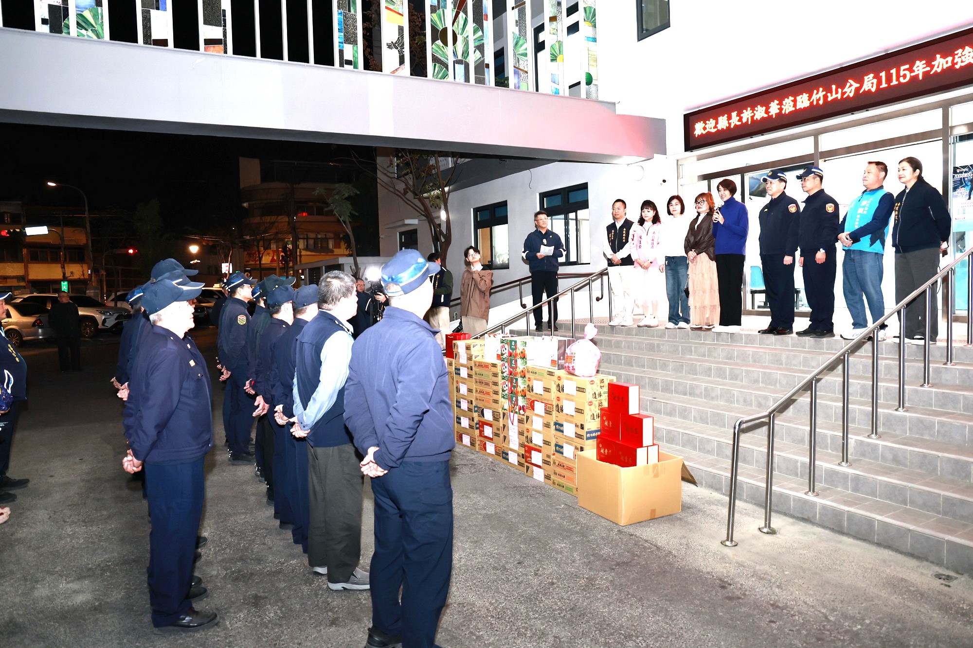 許縣長在縣警局局長謝宗宏的陪同下,分別前往竹山分局、竹山派出所、中和派出所、鹿谷分駐所及延平派出所慰問,除贈送慰問品外,也特別感謝警察同仁及協勤民力這段期間辛勞,犧牲春節連續假期與家人團聚時間,全力投入維護治安及交通疏導、為民服務等工作,讓南投縣民可以安心過好年,她代表全體縣民感謝大家過去一年來辛勞和付出。