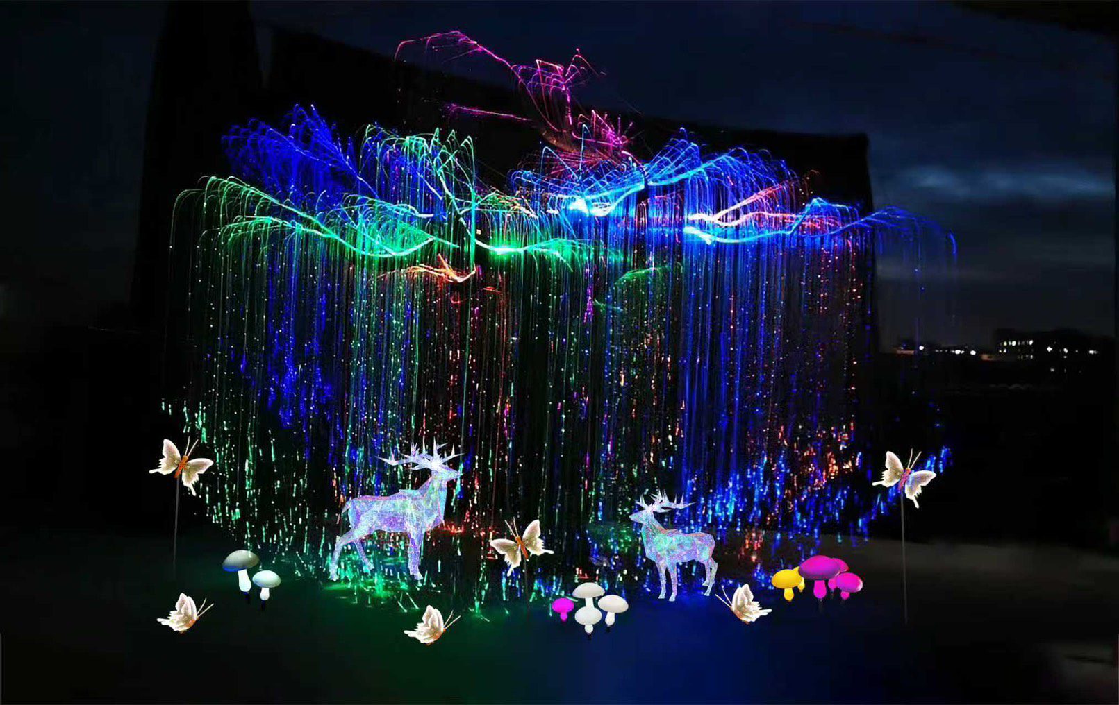 ▲長達30米的星光廊道打造繽紛的燈光裝置。(圖/嘉義縣政府提供)