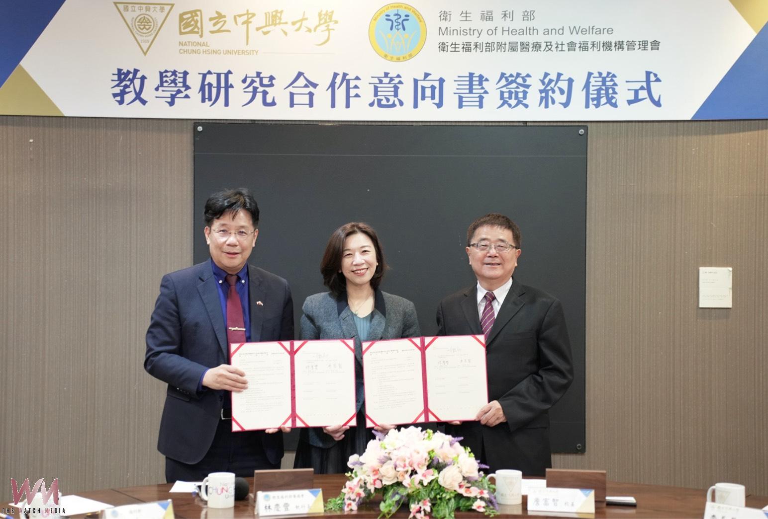 (觀傳媒中彰投新聞)【記者廖妙茜/台中報導】國立中興大學與衛生福利部附屬醫療及社會福利機構管理會(衛福部醫福會)於今(12)日舉辦合作協議書簽約儀式,正式建立跨機構合作關係。簽約儀式由衛福部政務次長林靜儀擔任見證人,中興大學詹富智校長與衛福部醫福會林慶豐執行長共同簽署,雙方攜手推動醫療、教育與學術研究之深度合作。