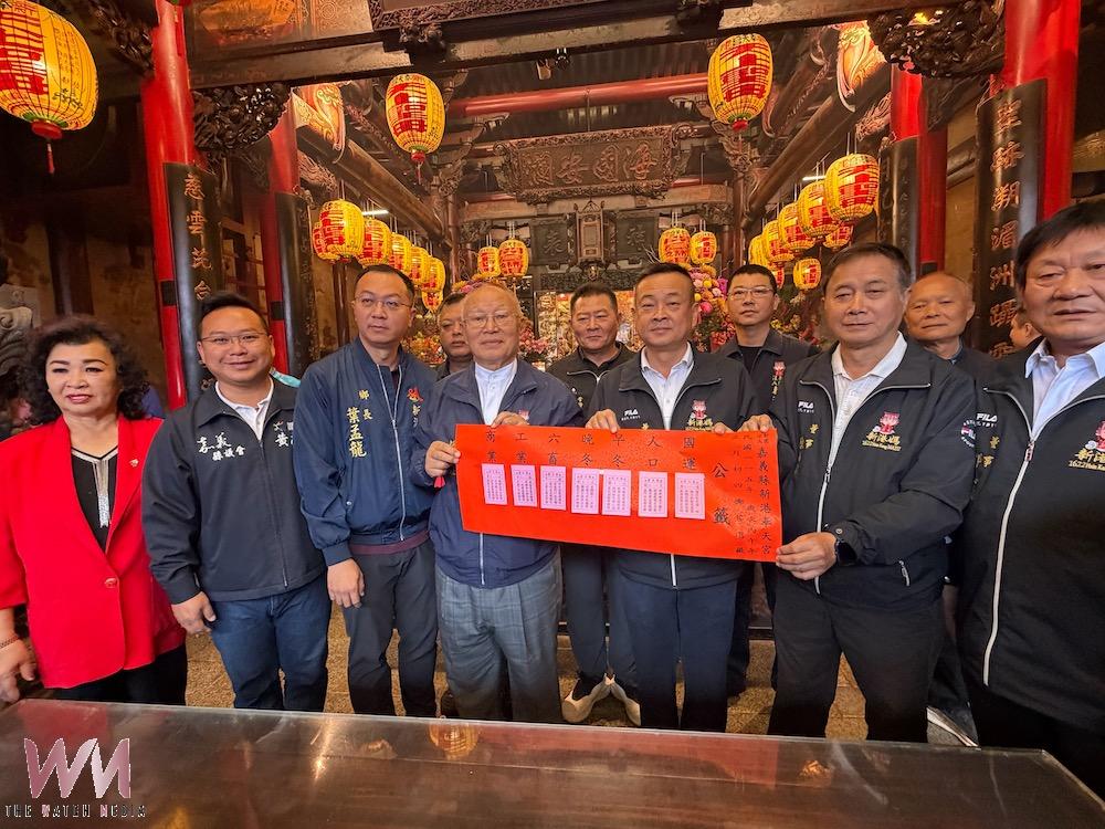 何達煌董事長賢伉儷帶領董監事,分別抽出今年的國運、人口、早冬、晚冬、商業、工業、六畜等籤。(圖/記者陳惲朋攝)