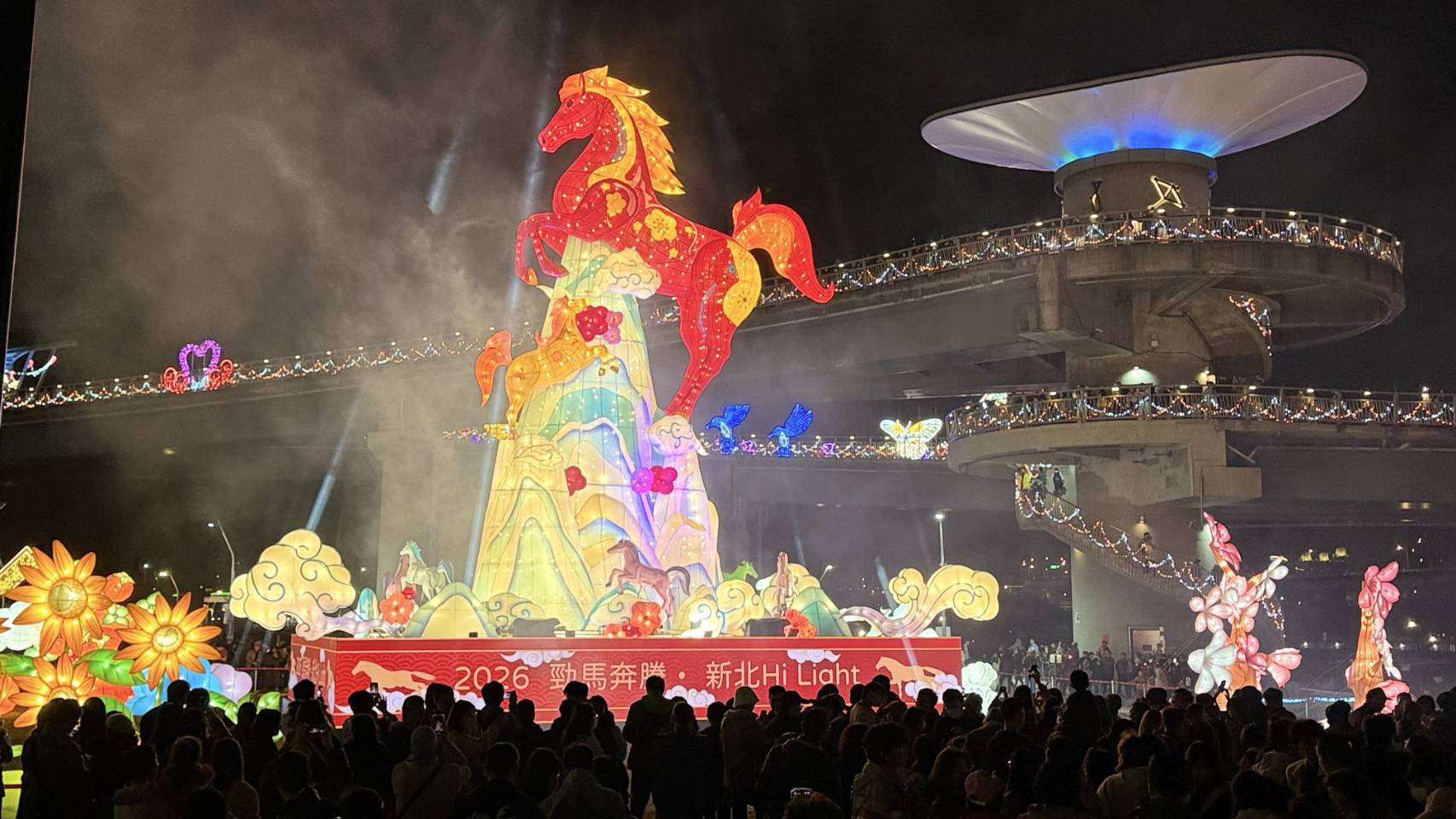 2026新北燈會點亮15米紅寶馬主燈 賞燈民眾擠爆大都會公園