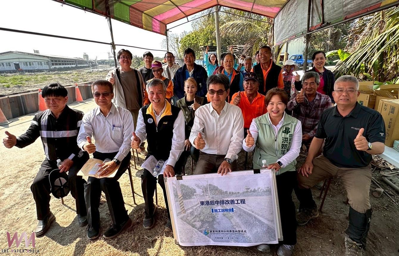農田水利署副署長林國華指出,本次工程將全面升級東港后中排水設施,包括新設長達1,037公尺座槽與26公尺強化護岸,藉由拓寬渠道與改善結構,提高通流效率並縮短豪雨排出時間。同時,工程也將重新刨鋪併行農路AC路面,兼顧排水安全與農村交通品質。