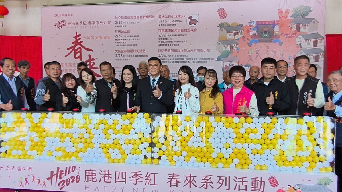 2026年春節年假後的第一天上班日,鹿港鎮長許志宏23日率施政團隊在行政大樓一樓中庭舉行新春團拜,並召開「2026鹿港四季紅-春來系列活動」記者會,正式宣告今年的春來系列活動熱鬧登場。