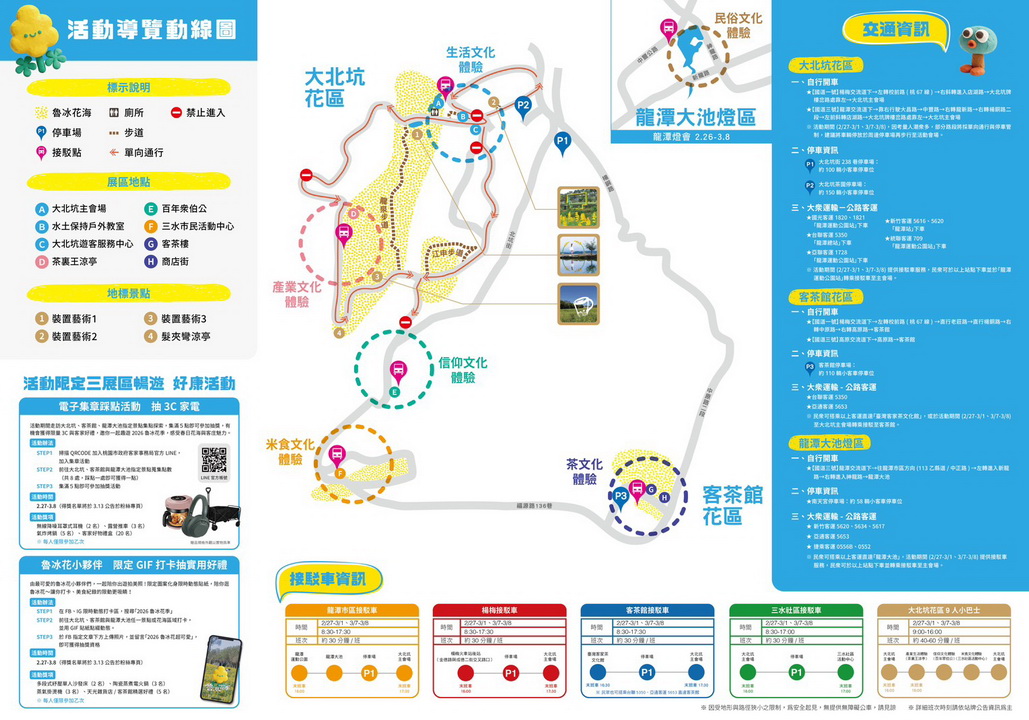 由於活動期間適逢2月27日至3月1日的228三日連續假期,龍潭警分局預見將湧入大量觀光人潮,特別針對轄區易壅塞路段與各熱門景點研擬完善的交通疏導作為,確保民眾出遊順暢。