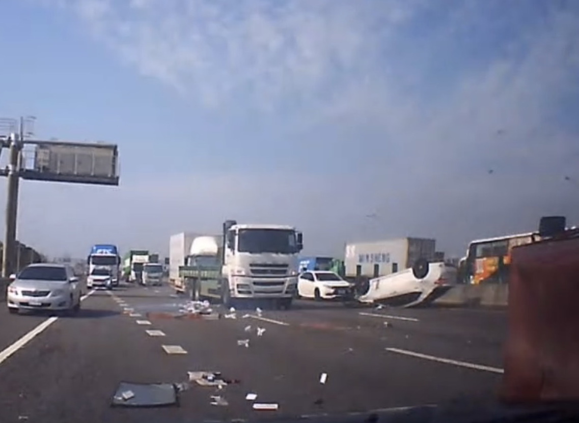 國道1號內壢段多車碰撞 車輛翻覆六人送醫