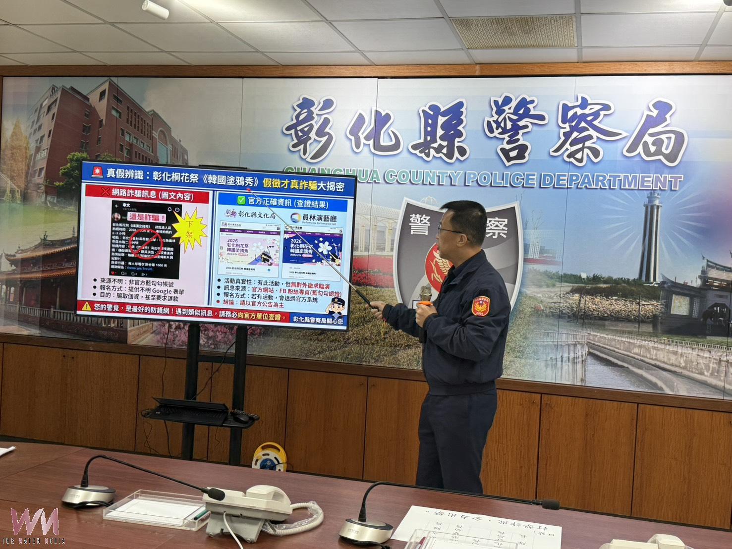 (觀傳媒彰化新聞)【記者陳雅芳/彰化報導】詐騙手法持續翻新,彰化縣警察局近日查獲社群平台出現假冒「彰化縣桐花季韓國塗鴉秀」名義徵才貼文,經查證後確認為不明帳號散布假訊息,已立即要求平台下架相關內容,並同步提醒民眾提高警覺,避免誤入詐騙陷阱。