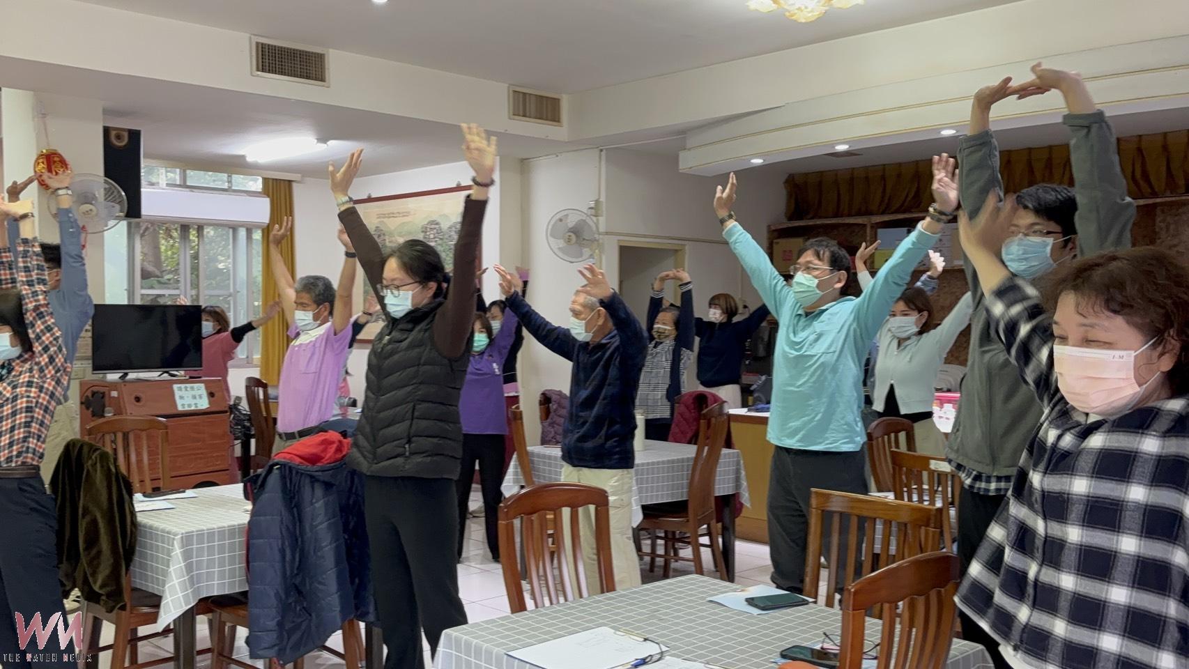 活動中,不少住民長輩跟著節奏緩緩操作,臉上露出舒心笑容;也有職員工互相提醒動作要領,現場笑聲不斷,在互動中拉近彼此距離。