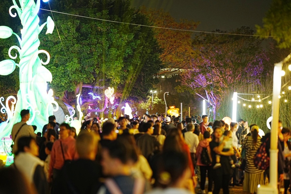 教育局表示,走進「童趣歡樂谷」燈區,彷彿踏入一座會發光的童話世界,金黃燈光宛如星河鋪展,搭配林間光影與繽紛燈飾,在散步賞燈時,也能享受一段專屬於家人的夜間小旅行;許多家長推著娃娃車、牽著孩子慢慢走,沿途拍照打卡、留下合影,也有許多祖孫三代同框拍照,留下「一起長大」的珍貴畫面,成為燈會最暖心的風景。