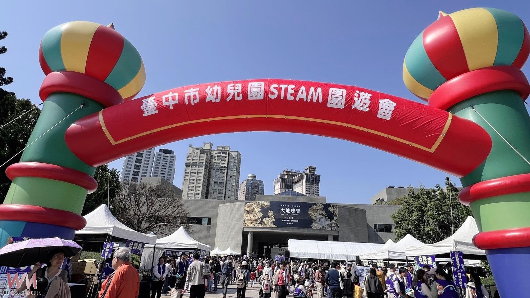 (觀傳媒中彰投新聞)【記者廖妙茜/台中報導】台中市政府教育局今(7)日與國立自然科學博物館攜手合作,於科博館人類文化廳前廣場盛大舉辦「114學年度台中市幼兒園STEAM教育成果園遊會」。此次活動以「小手玩創意,一童趣STEAM」為主題,邀集來自中市19個行政區、20所STEAM種子園及協辦單位,設置28個體驗攤位,吸引超過2,000名親師生與市民到場參與。
