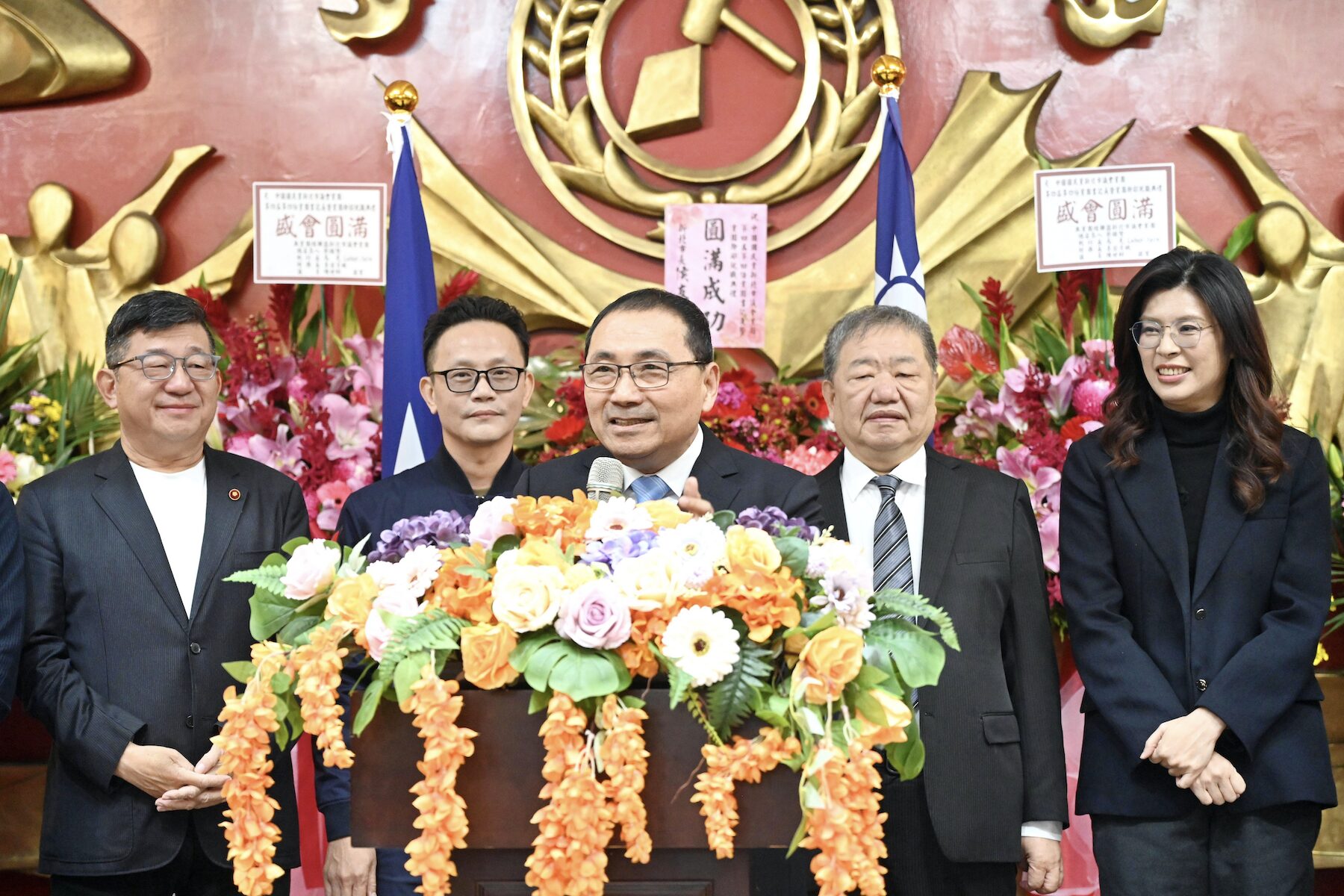 新北市議會國民黨團(9)日舉辦第四屆第四任書記長暨黨團幹部就職典禮,市長侯友宜率市府團隊到場觀禮祝賀,期許府會同心齊力,一棒接一棒傳承優質服務,加速新北市的發展。