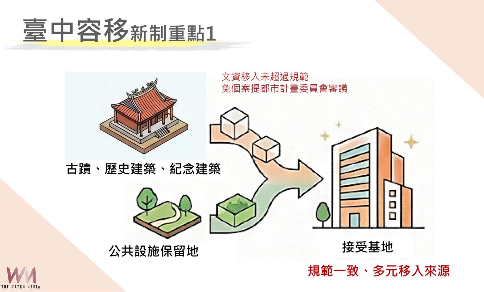 (觀傳媒中彰投新聞)【記者廖妙茜/台中報導】因應社會經濟環境變遷,並配合中央法規修正,台中市政府於3月5日正式發布修正「台中市實施都市計畫容積移轉審查許可條件及作業要點」。市府都市發展局表示,此次修正除配合內政部「古蹟歷史建築紀念建築土地容積移轉辦法」修訂外,更透過制度設計落實文化資產保存,並針對現代社會居住需求,提升建築規劃合理性與都市發展韌性。