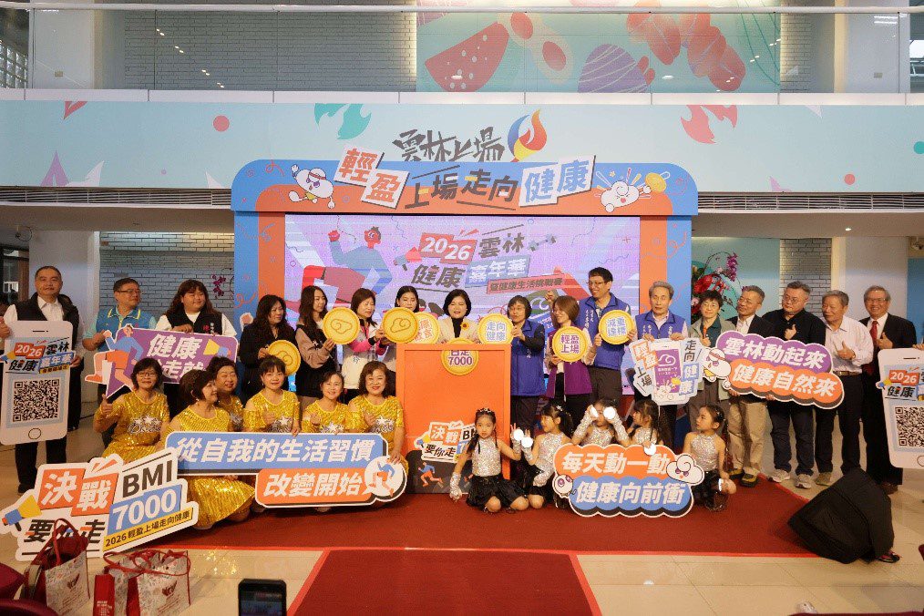雲林縣政府今(18)日啟動「第2屆雲林縣健康生活挑戰賽—2026決戰BMI 要你走7,000」及「2026健康嘉年華」活動,縣長張麗善、副縣長陳璧君率縣府各局處首長,偕同縣內各醫療機構及相關公會代表共同號召全縣鄉親踴躍參與健康生活挑戰及20鄉鎮市健走活動,一同養成規律運動習慣,打造健康生活,讓健康成為雲林人的日常。