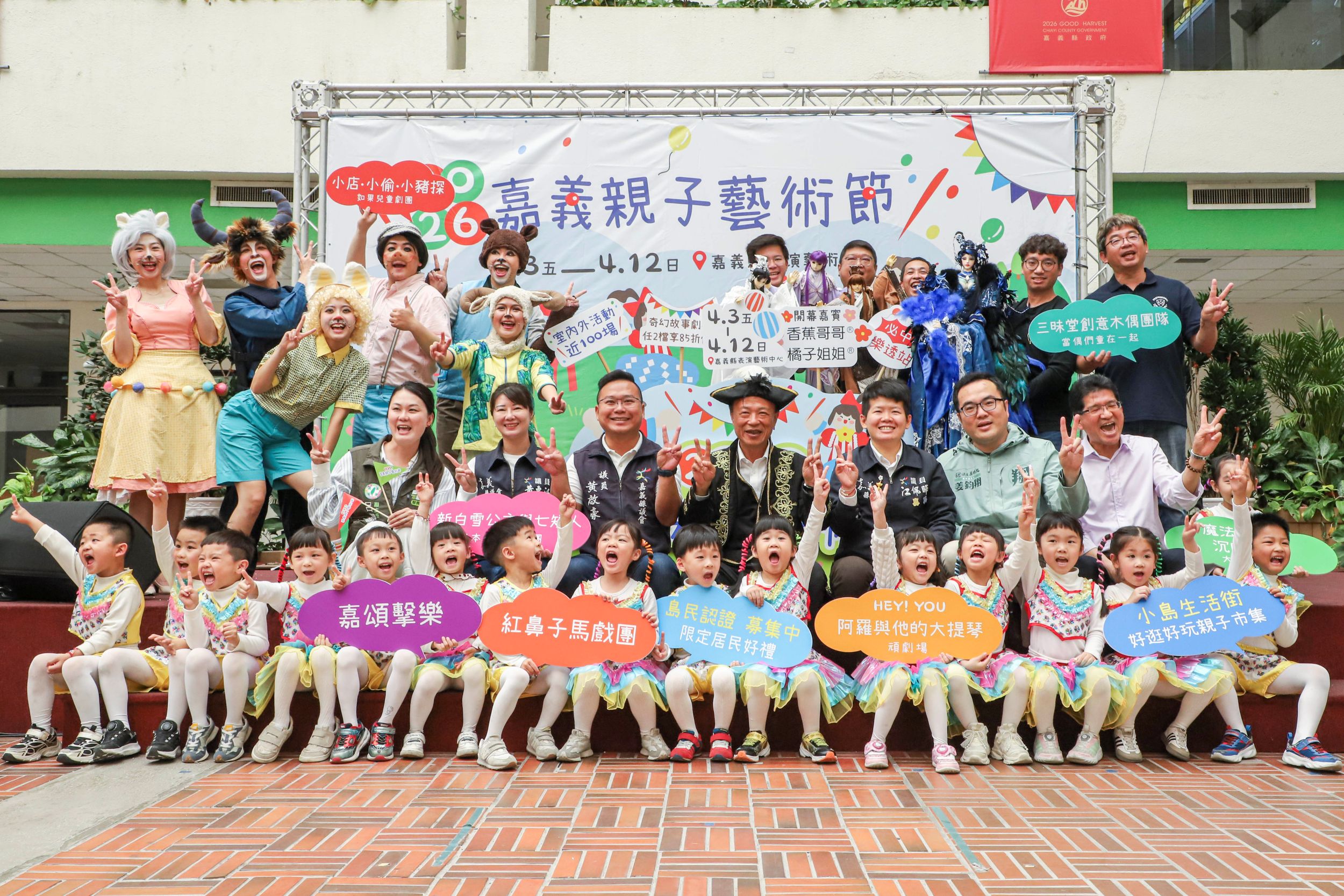 「2026嘉義親子藝術節」將於4月3日至12日在嘉義表演藝術中心熱鬧登場。嘉義縣政府19日舉辦記者會,由縣長翁章梁與多位議員共同宣告,今年以「登島探索」為主題,打造沉浸式互動體驗,邀請大小朋友化身「藝術島民」,在觀賞演出之餘,透過集章尋寶任務,開啟一場充滿驚喜的藝術冒險。