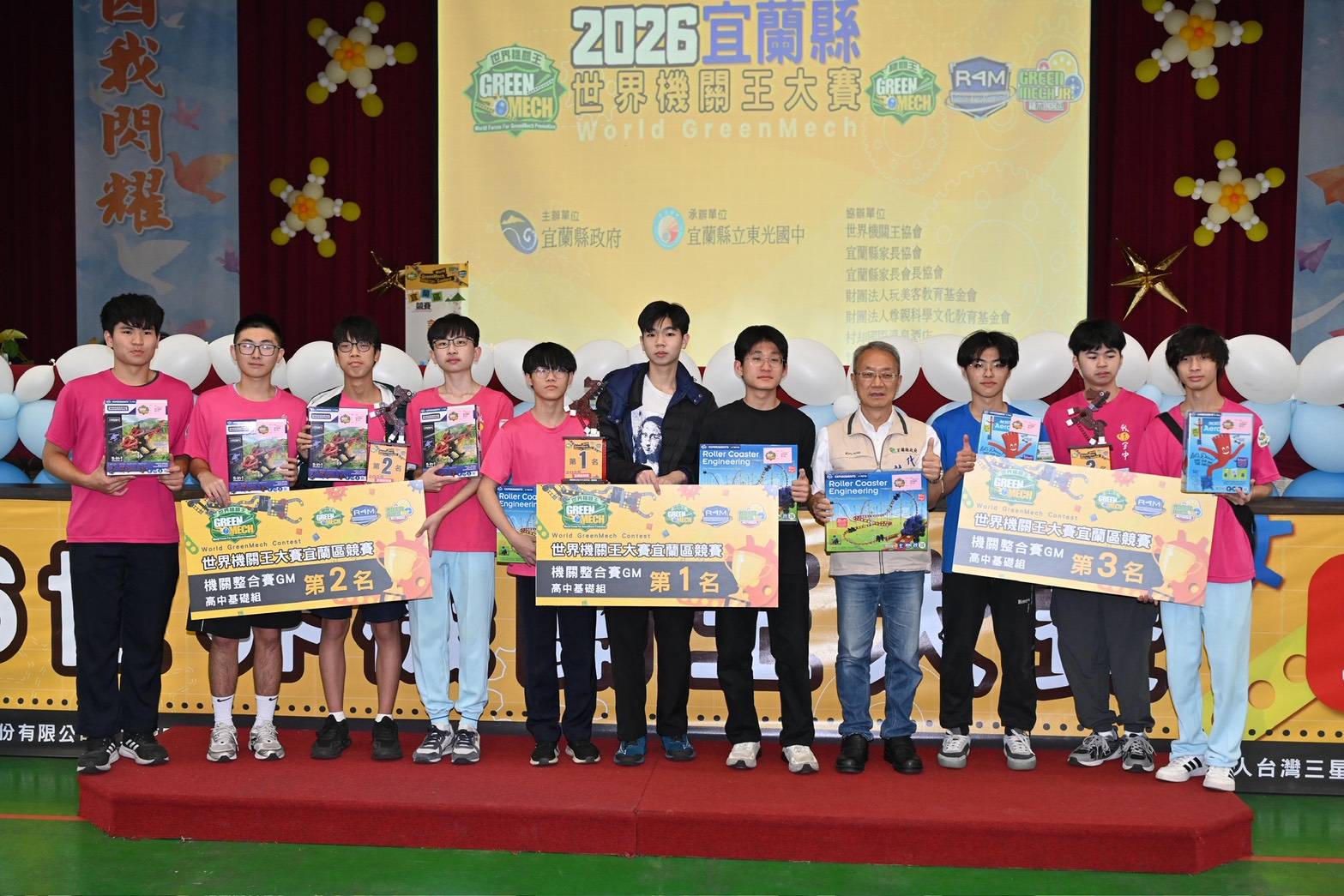「2026世界機關王大賽宜蘭區競賽」月22日下午在東光國中體育館舉行,來自全縣各級學校共計101隊、257人同場競技,宜蘭區競賽將推薦優秀的獲獎隊伍,參加5月於臺中科技大學辦理的「2026世界機關王大賽臺灣賽」。
