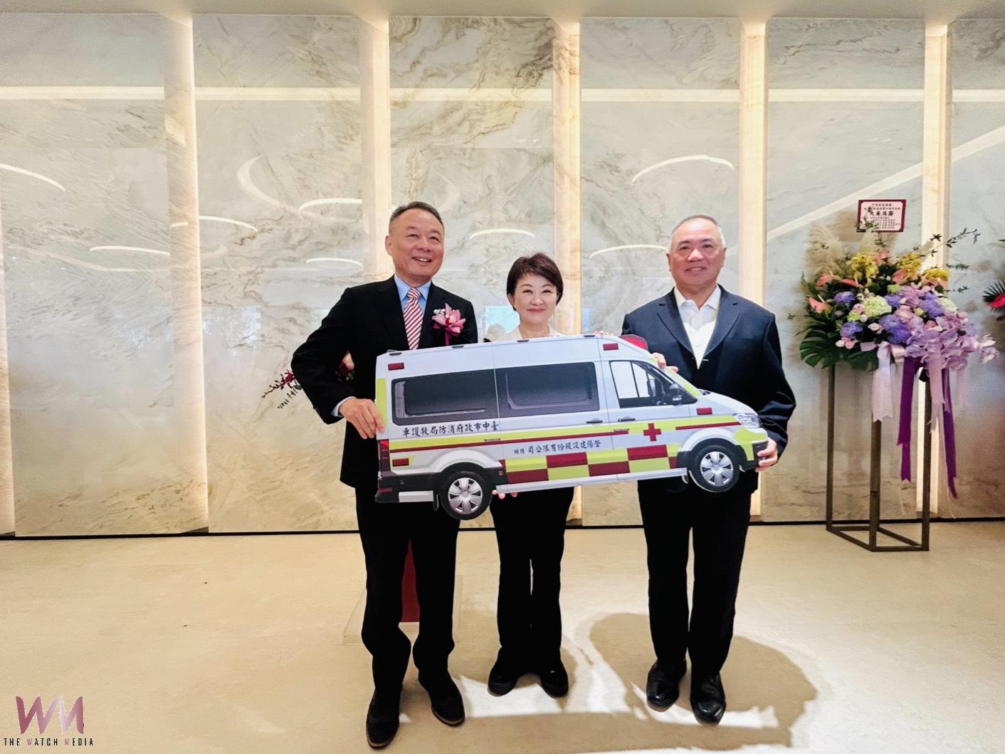 (觀傳媒中彰投新聞)【記者廖妙茜/台中報導】台中市人口突破286.6萬,躍升全台第二大城,緊急醫療需求持續攀升。台中市政府消防局指出,114年全市救護車出勤已達16萬件,第一線救護量能面臨高度壓力。長期深耕在地的登陽建設股份有限公司秉持「取之於社會、用之於社會」精神,今(25)日捐贈一輛德國福斯CRAFTER高頂救護車及多項高階救護器材,協助提升台中緊急救護能量。