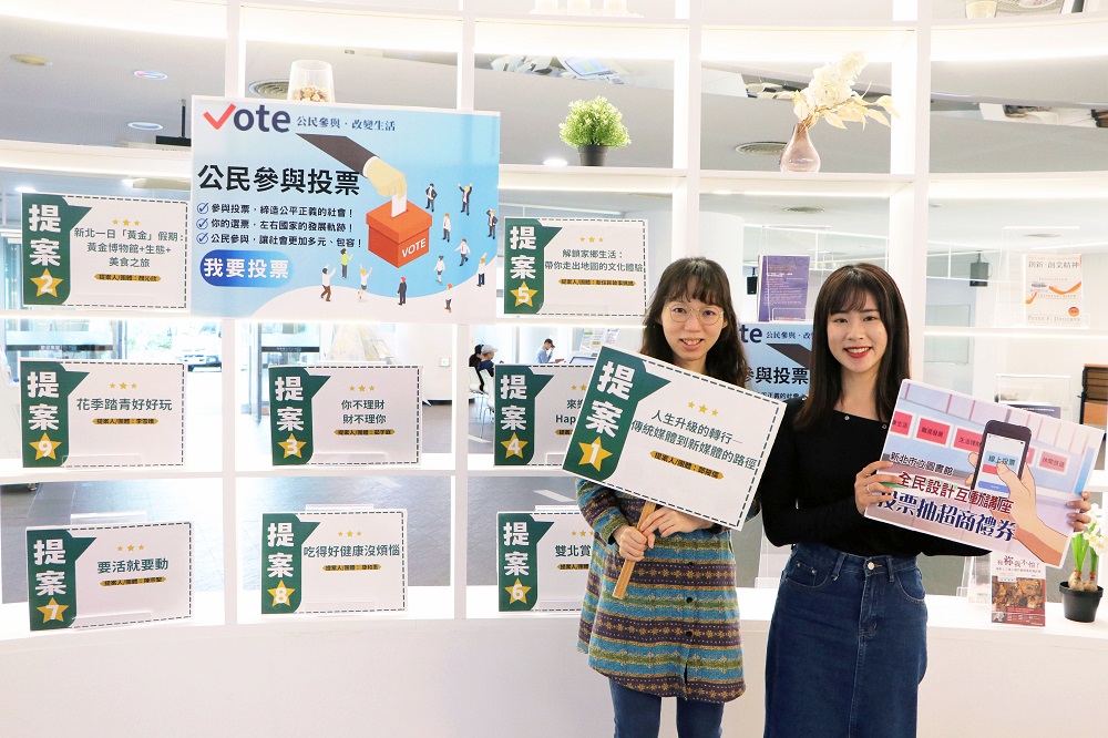 新北市「全民設計互動系列講座」共有9項提案進入票選,包括職涯轉型與自我成長的「人生升級的轉行(傳統媒體到新媒體的路徑)」、「跑出舒適圈,發現更好的自己」;投資理財的「你不理財,財不理你」;健康生活的「要活就要動」、「吃得好健康沒煩惱」;多元文化的「解鎖家鄉生活—帶你走出地圖的文化體驗」;以及休閒旅遊的「花季好好玩」、「新北一日『黃金』假期」、「雙北賞櫻趣」等,3月27日至4月15日止開放全民票選,歡迎大家到「新北市政府公民參與網路投票系統」進行線上投票,參加投票還可以抽100元超商禮券。詳細資訊請至新北市立圖書館網站查詢(http://www.library.ntpc.gov.tw)。