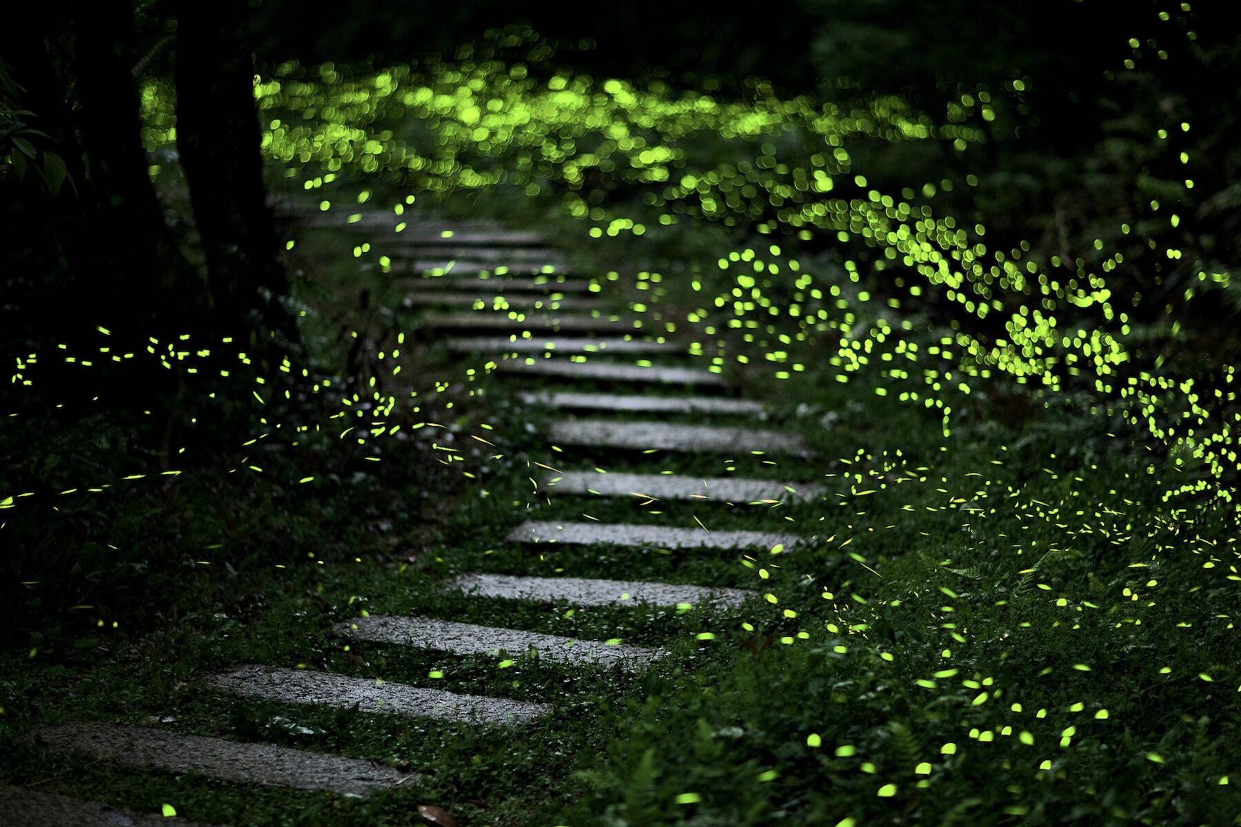 搭乘捷運即可輕鬆抵達的賞螢熱點,首推新店碧潭和美山步道。從新店捷運站出發,步行僅需10至15分鐘便可抵達和美山登山口,沿途還能收集「微笑山線大縱走尋寶集章任務」的螢火蟲寶石。春夜降臨,和美山化身為夢幻螢光走廊,沿徑點點螢火飛舞,宛如流動的綠色星河,登頂更可飽覽碧潭湖光山色美景,和美山螢火蟲求偶繁殖高峰期,集中在4月中旬到5月初。若想深入認識螢火蟲種類與棲地營造知識, 可透過網路線上表單報名「臺灣自然科技學會」於4/15至4/28舉辦之相關活動,或搭公車前往烏來,轉乘空中纜車直達雲仙樂園,由專業導覽人員帶領深入螢火蟲棲地,親身感受夜色下的生態魔法。