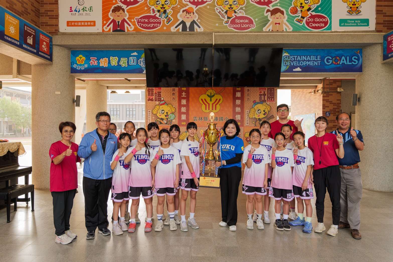 迎接兒童節到來,雲林縣長張麗善31日前往土庫國小,贈送象徵把運動帶進校園、家庭及生活意涵的兒童節禮物「跳繩」,並與孩子們一起跳繩同樂。同時也公開表揚土庫國小五年級女子籃球隊榮獲中華民國國民小學體育總會(EBC)五年級女子組冠軍,肯定學生在競技場上的優異表現與團隊合作精神