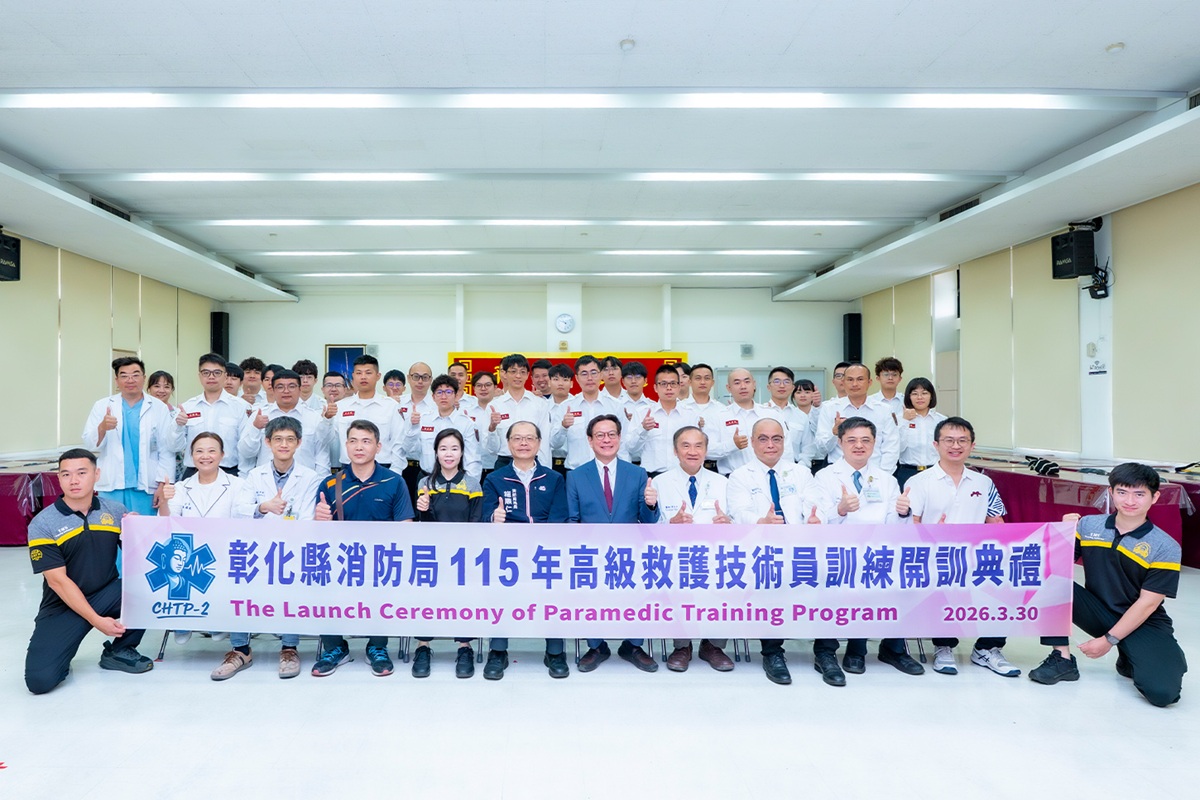 為強化中台灣急重症救護能量,彰化縣消防局與彰化基督教醫院於31日隆重舉行「115 年度高級救護技術員(EMT-P)培訓班」開訓典禮。彰基總院長陳穆寬教授強調,在醫療資源相對稀缺的中台灣,每一位 EMT-P 都是「移動的急診室」,是縮短城鄉醫療差距、提升急重症存活率的最關鍵力量。