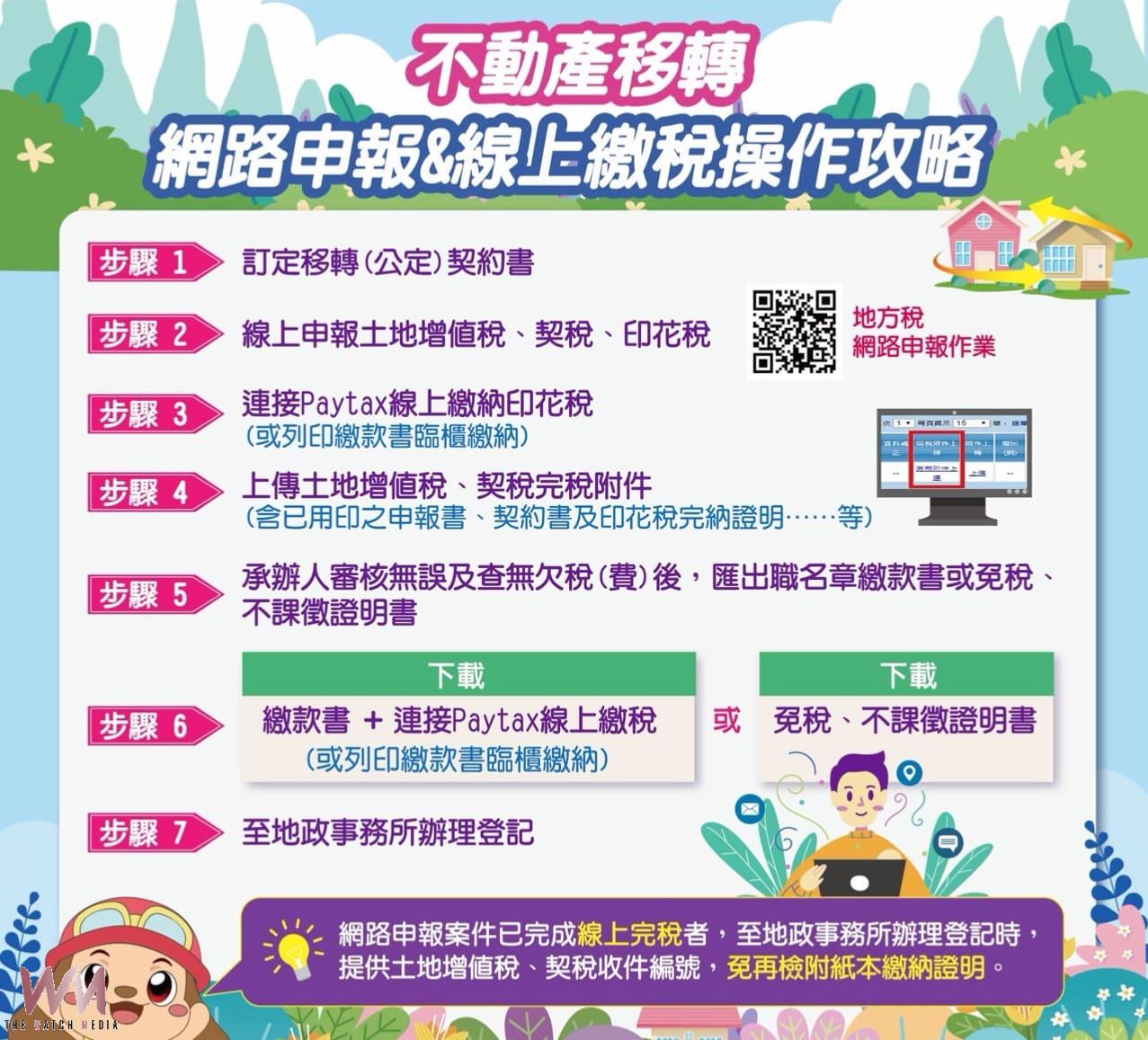 沈局長進一步說明,民眾完成申報後,只需上傳已蓋妥雙方(義務人及權利人)印章的申報書、契約書及印花稅繳款書等相關附件,經地稅局核定稅額,並確認無欠繳工程受益費、地價稅及房屋稅後,系統將匯出附有職名章的繳款書,民眾可直接連結Paytax進行線上繳稅,全程免出門,大幅節省交通與等候時間。
