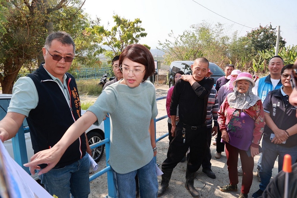 濁水村產業運輸道路路面改善,經費約118.6萬元,該路段因颱風豪雨導致路面凹洞、泥濘不堪,既有路面嚴重破損。許縣長表示,農民運送火龍果、芭樂等農產品時容易碰撞,損壞賣相,產業道路多年未修,嚴重影響農民收益。她當場決定優先改善,讓農民運輸順暢、品質提升。種植芭樂的青農葉岱育表示:「縣府願意協助改善運輸道路,真是太好了!」