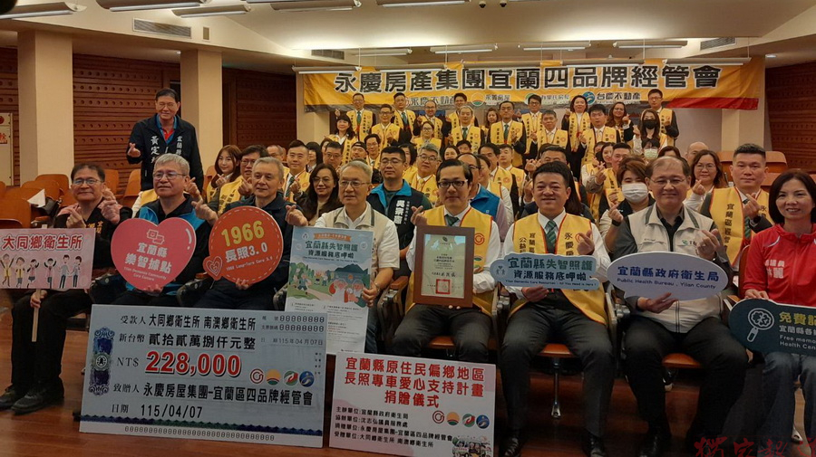 宜蘭縣兩個原民鄉及大南澳地區因地處偏遠,且道路坡度落差甚大,造成長輩往返文化健康站的過程中險象環生,甚至發生意外事件,引起永慶房產集團宜蘭四品牌經管會的關注,並慷慨解囊捐贈經費,以專款專用方式挹注載送長輩參與長照服務的課程與活動。