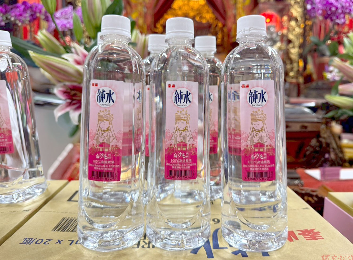 眾所期待的白沙屯媽祖繞境進香活動將於4月12日(日) 23:55起駕,泰山純水聯名白沙屯媽祖今年已是第二年,今年瓶身融入粉紅超跑的意象,印製Q版媽祖的肖像、以柔和色調勾勒出媽祖的慈悲愛護,瓶蓋上也放上「保庇不斷」象徵媽祖守護信眾的寓意;泰山純水堅持「105°C 高溫煮沸」,透過嚴謹的過濾與煮沸殺菌程序,確保每滴水的純淨;不脫落蓋的專利設計更讓香燈腳們在人潮擁擠、行走匆忙的粉紅超跑隊伍中,無需擔心單手開蓋後蓋子掉落失蹤或弄髒,補水更安心、更便利!