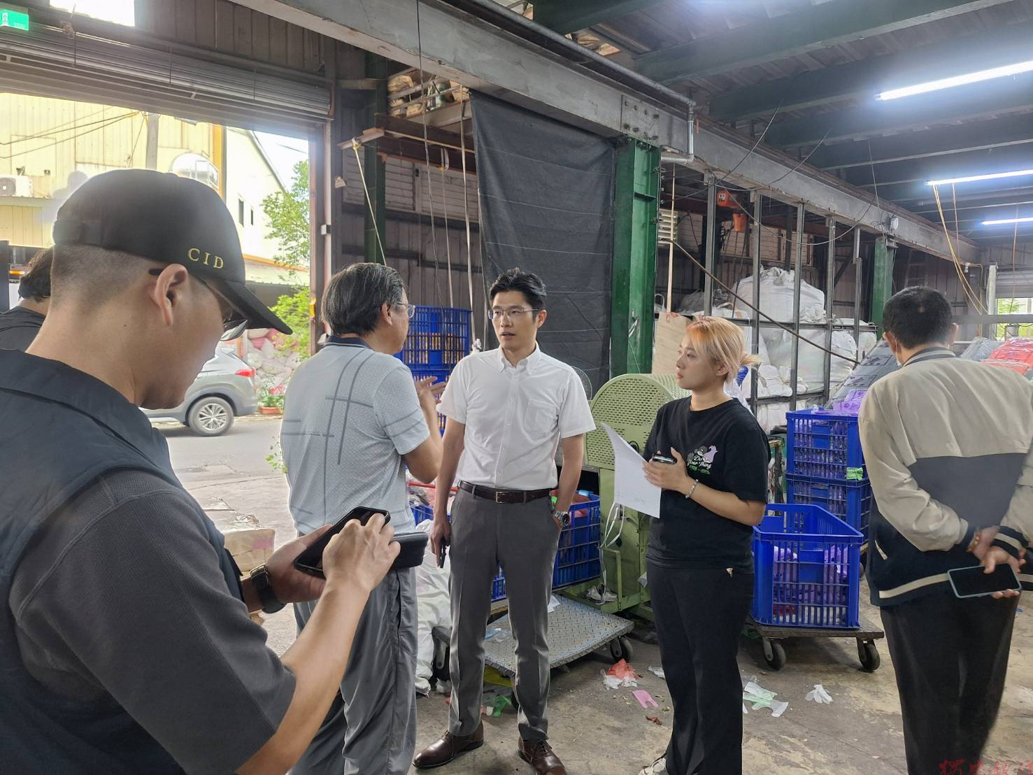 台南地檢署鍾和憲檢察長於連假甫結束,再行指示民生犯罪專組錢鴻明主任檢察官於今(7)日率同台南市政府警察局刑事警察大隊偵一隊及台南市政府經濟發展局,依據先前查訪零售業者所獲資訊,前往台南市新營工業區內2家塑膠袋製造業者進行查訪。