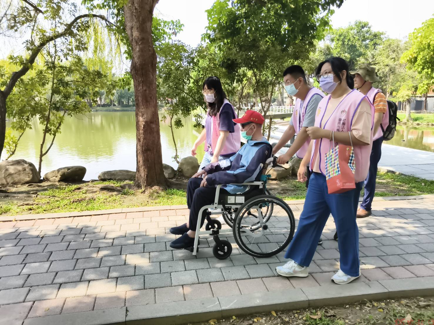 除了日常訓練外,小太陽工坊積極連結在地資源,與工坊附近長照機構合作推動代間交流服務,每週固定安排服務對象陪伴長輩至戶外散步、曬太陽及聊天互動,透過實際的「助人」經驗,不僅促進長者身心健康,也讓身心障礙者在過程中建立自信與責任感。