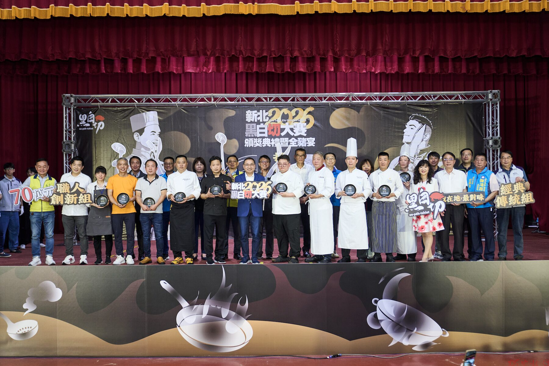「新北黑白切大賽」冠軍正式誕生!新北市政府市場處(11)日於國立空中大學舉辦頒獎典禮。歷時近三個月的賽事,吸引112家來自市場攤商及餐廳、飯店報名參與,經過專業評選與嚴謹的「盲吃評比」,最終「經典傳統組」由「古早切仔麵」獲得冠軍,「古早味小吃店」與「鑫鮮魚湯」分別奪得亞軍與季軍;「職人創新組」則由「隱居居酒屋」獲得冠軍,「白金花園酒店」與「福泰大飯店-福滿樓」為亞軍與季軍。