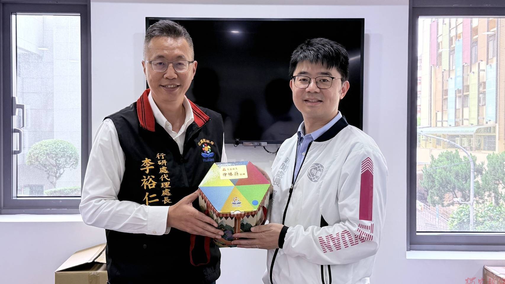 ▲桃園市政府新聞處長羅楚東(左)與花蓮縣政府行政暨研考處代理處長李裕仁(右)相見歡。(圖/花蓮縣政府提供)
