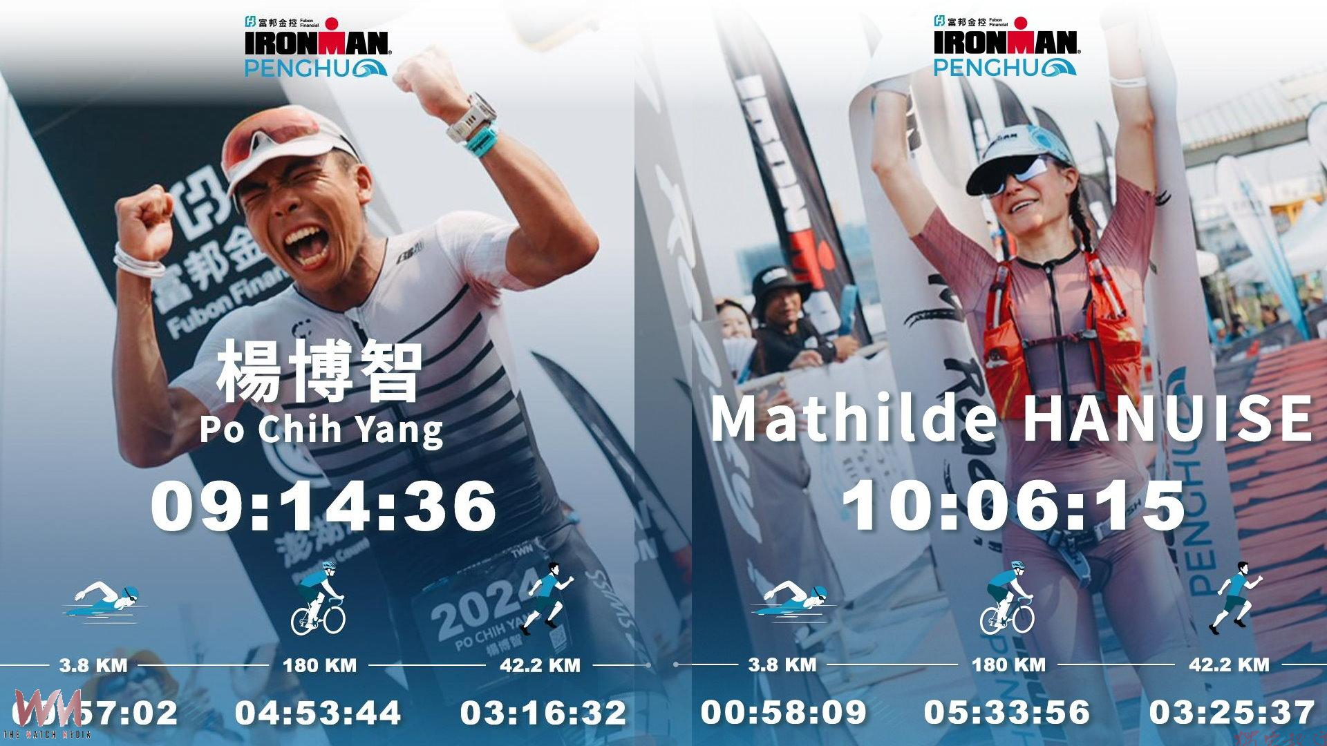 群雄爭霸!楊博智強勢逆轉封王 比利時的選手Mathilde HANUIS 驚艷封后,經過激烈拚搏,男子組由臺灣地主楊博智以總成績 09 小時 14 分 36 秒霸氣逆轉封王(游泳 57 分 02 秒、自行車 04 小時 53 分 44 秒、路跑 03 小時 16 分32 秒);女子組部分則由來自比利時的選手Mathilde HANUISE以總成績 10 小時 06 分 15 秒拿下本屆女子總冠軍(游泳 58 分09秒、自行車 05 小時 33 分56 秒、路跑 03 小時 25 分 37 秒),兩位選手在強風與 226 公里試煉中展現極致意志,寫下輝煌紀錄。