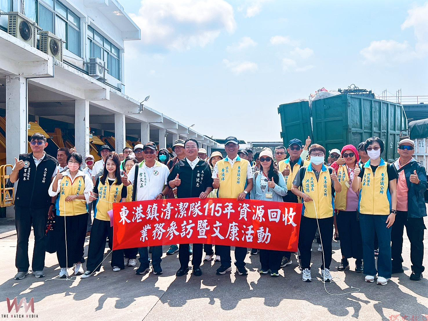 東港鎮為南臺灣重要漁業重鎮,港區作業頻繁,結合觀光人潮帶動,回收物種類多元且處理量持續增加,對清潔隊分類效率與作業管理形成實質壓力。本次由鎮長黃禎祥率隊,縣議會議員方文正一同參與,隨行包含秘書謝尤敏、民政課長洪進德、社會課長郭春枝、財政課長謝淑華、清潔隊長劉曉芳、市場管理員洪嘉昌、機要課員蘇保書等業務主管,並結合承辦人員及隊員約60人共同參與,展現對基層環保工作的重視。