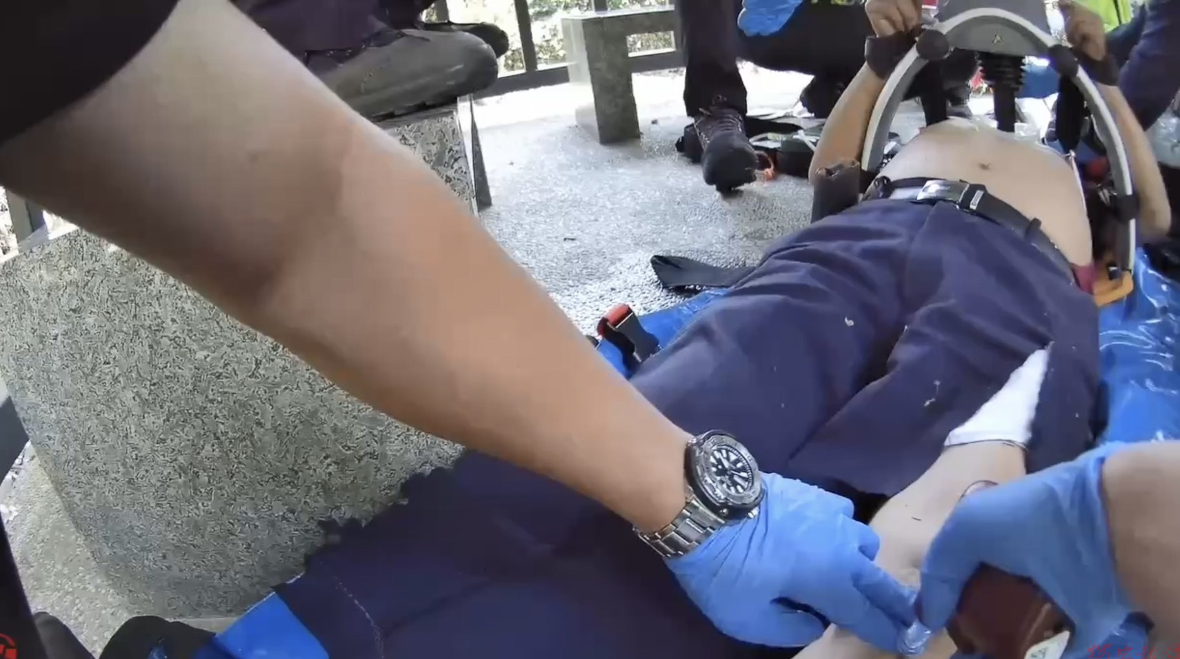 (觀傳媒彰化新聞)【記者陳雅芳/彰化報導】一名70多歲男子12日上午於彰化縣芬園鄉挑水古道健行途中,突然倒地失去呼吸心跳(OHCA),情況危急。南投與彰化兩地消防局立即啟動跨縣市救護機制,共派遣4輛救護車、12名救護技術員趕赴現場搶救,展開一場與死神拔河的生命接力。