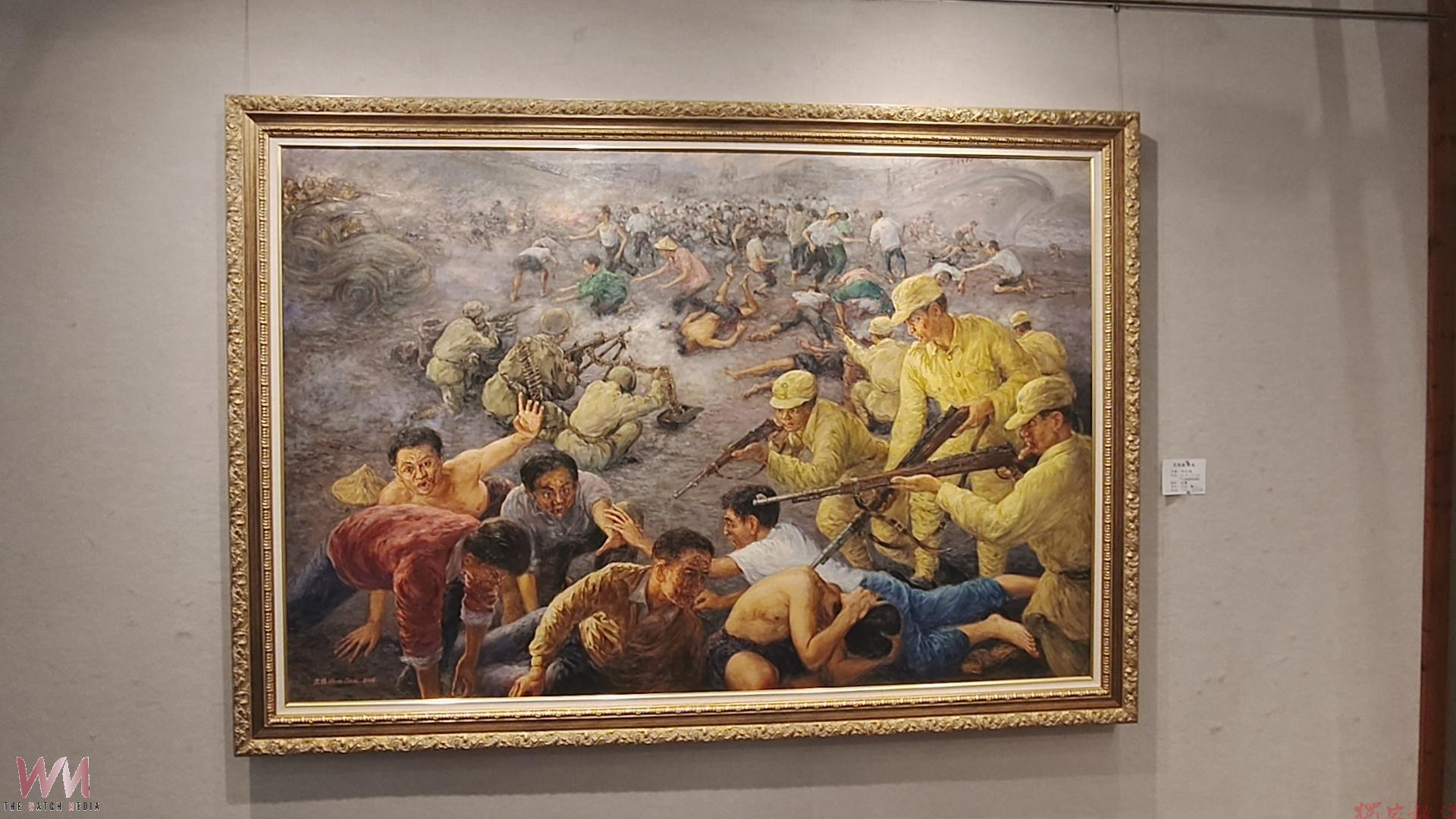 本次展覽最大亮點,包括施並錫教授捐贈與借展的4幅核心原作,其中《1947年3月8日下午三點基隆港的屠殺》以強烈構圖重現歷史瞬間,而《串綁的冤魂》系列則以震撼視覺語言呈現時代傷痕,透過濃烈色彩與張力筆觸,讓觀者在凝視中感受歷史重量。