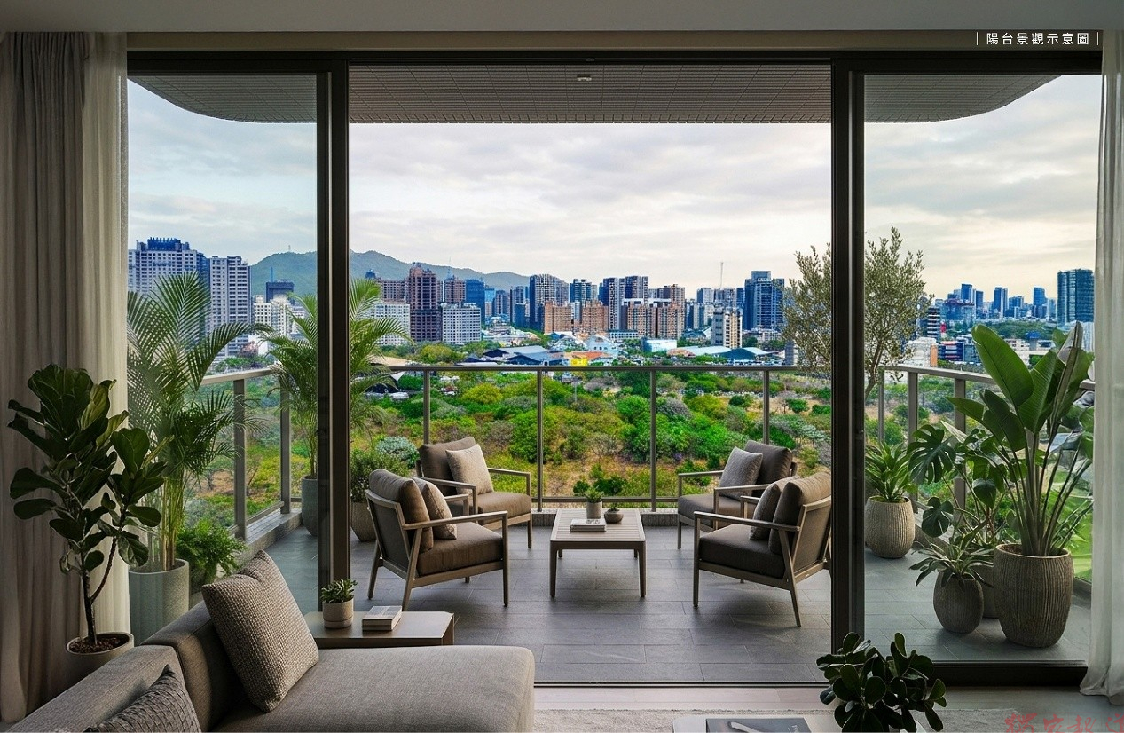 遠雄沐蘊規劃深遮陽、大採光的景觀陽台,在室內與城市自然景觀之間,打造令人驚豔的凌空跨界生活想像空間。