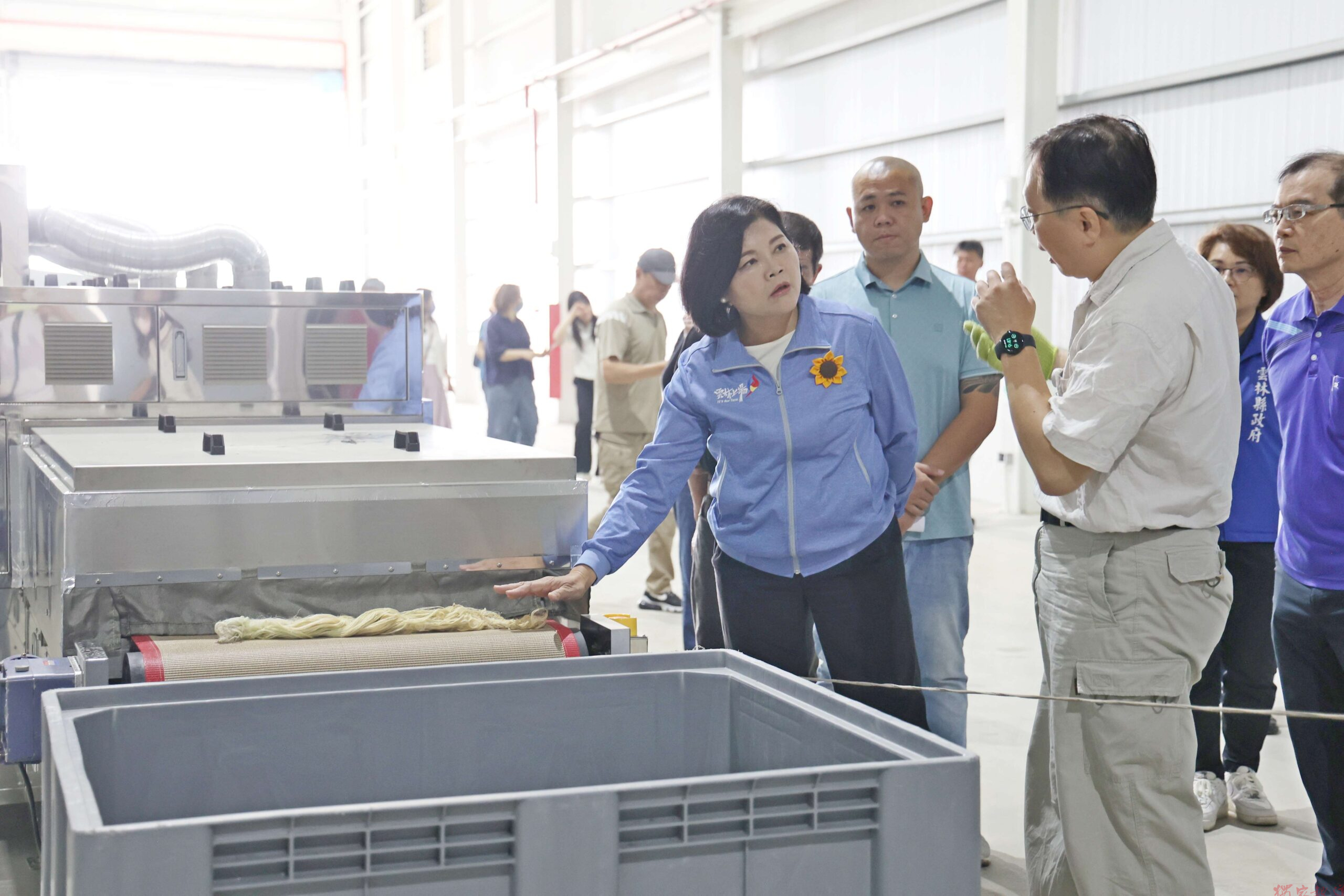 雲林縣推動鳳梨資材全循環迎來新里程碑,今(17)日縣長張麗善率隊進行勘查由保證責任雲林縣永興果菜生產合作社及國立虎尾科技大學執行推動的「農業剩餘資材循環利用場域」,透過現場導覽與製程說明,全面掌握農業剩餘資材高值化應用進展,目前該場域及設備都已完工並進入試車階段,預計5月可試營運、盼7月正式上線。