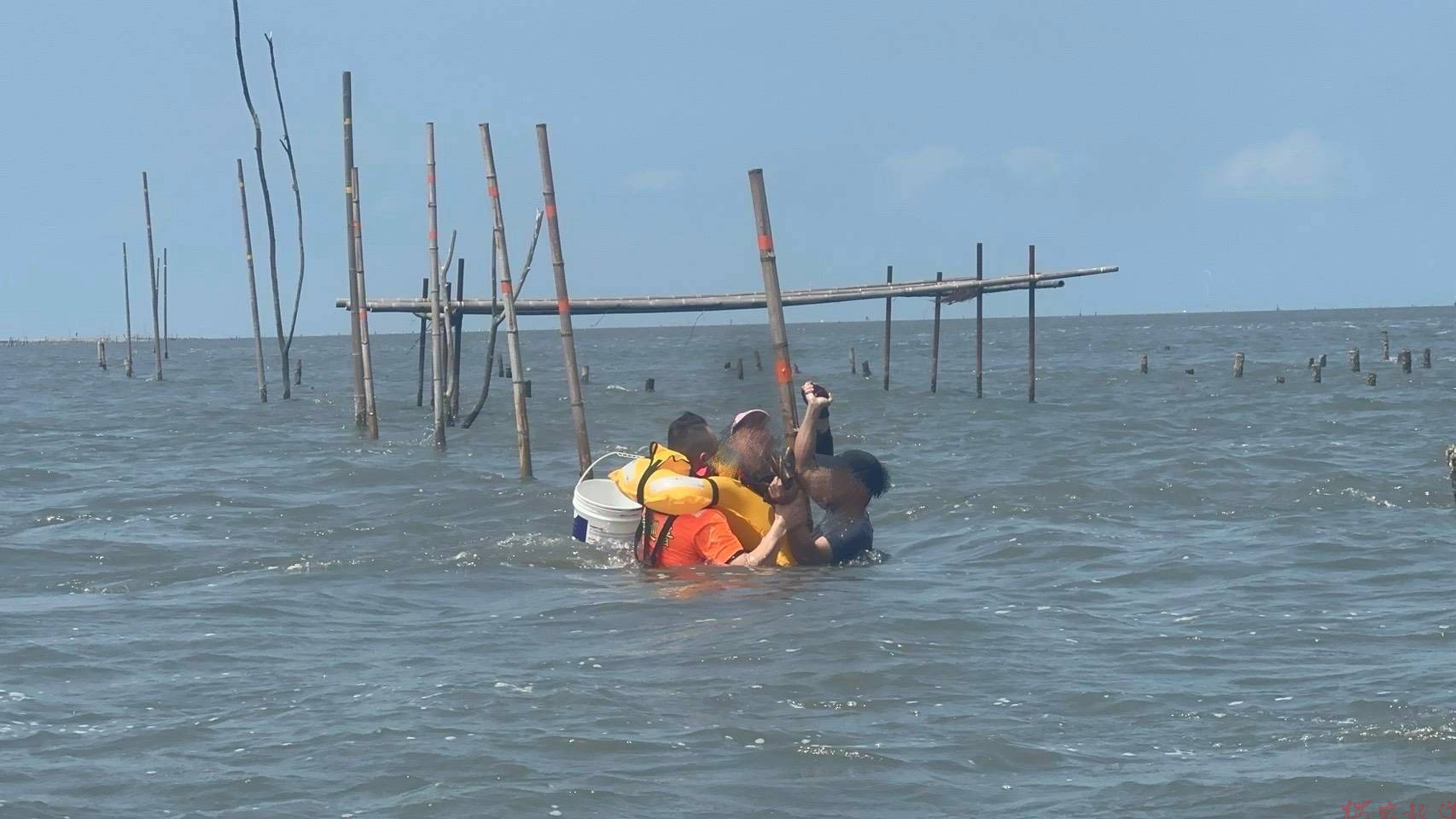 據了解,當時海水不斷灌入蚵架間隙,水流湍急且暗藏危機,兩人只能死命抓住蚵架支柱苦撐,身體在海水中搖晃起伏,水位一度直逼腰際,隨著體力流失,隨時可能被海流捲走甚至滅頂,現場氣氛驚悚萬分。