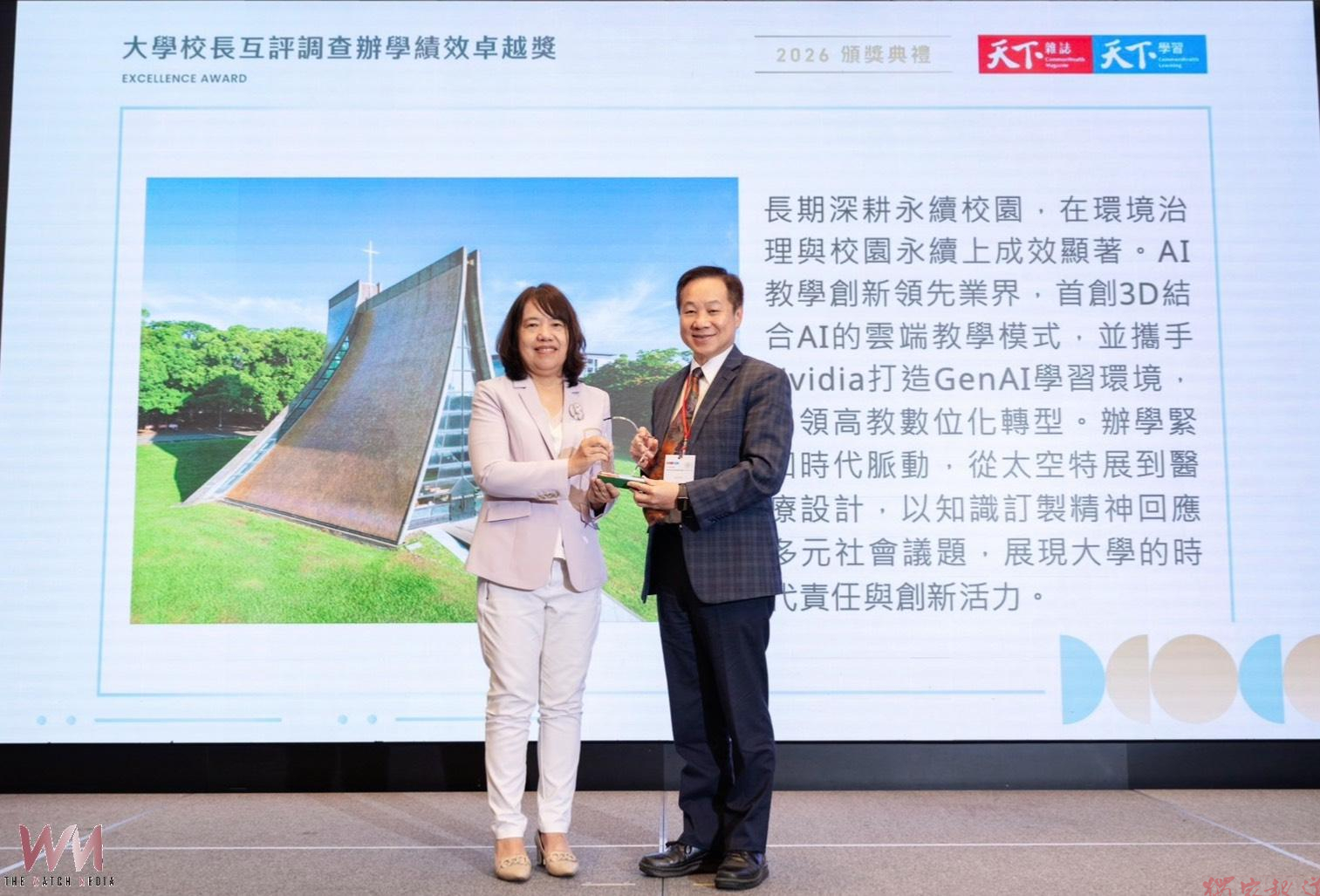 (觀傳媒中彰投新聞)【記者廖妙茜/台中報導】東海大學於《天下雜誌》日前公布 2026 年「天下大學公民獎暨校長辦學績效互評調查」結果中,憑藉深厚的永續底蘊與強大的 AI 創新量能,連續三年蟬聯「天下大學公民獎」私立一般大型大學組榜首。在已連續舉辦十二年的「大學辦學績效互評獎」,於國內110所大專院校校長互評中拿下全國第七名。