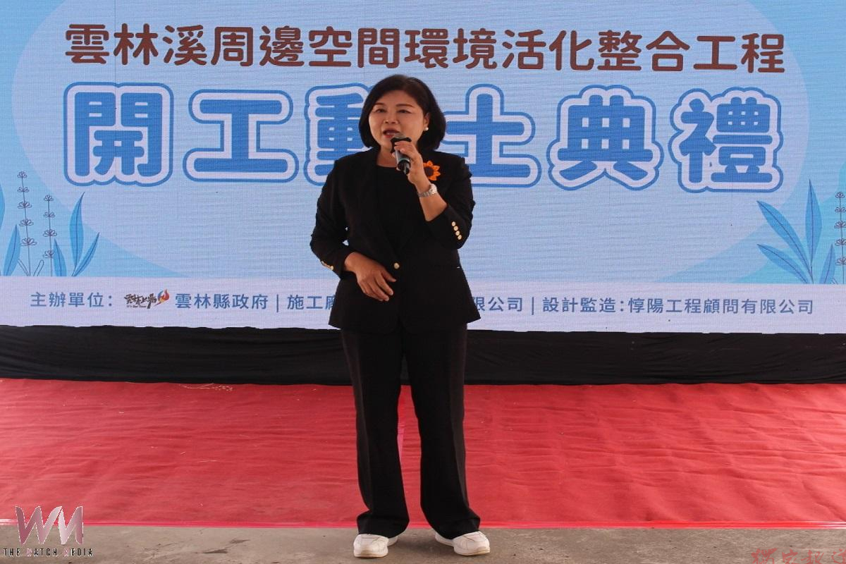 縣長張麗善表示,今天動土的是下游的1.3億工程,從正心二路水岸步道景觀,沿著鐵道公園及玉鳳宮周邊景觀整合、圖南宿舍串聯步道到鐵道公園後段及人本環境改善,其中包括水資中心休憩環境的營造等工程,串聯水域、綠地與人文空間,預計在今年12月底來完成,完工後一定能夠讓整個斗六市亮起來;甚至透過雲林溪的整治讓大家重見這條美麗的河川,也帶動斗六市的發展。
