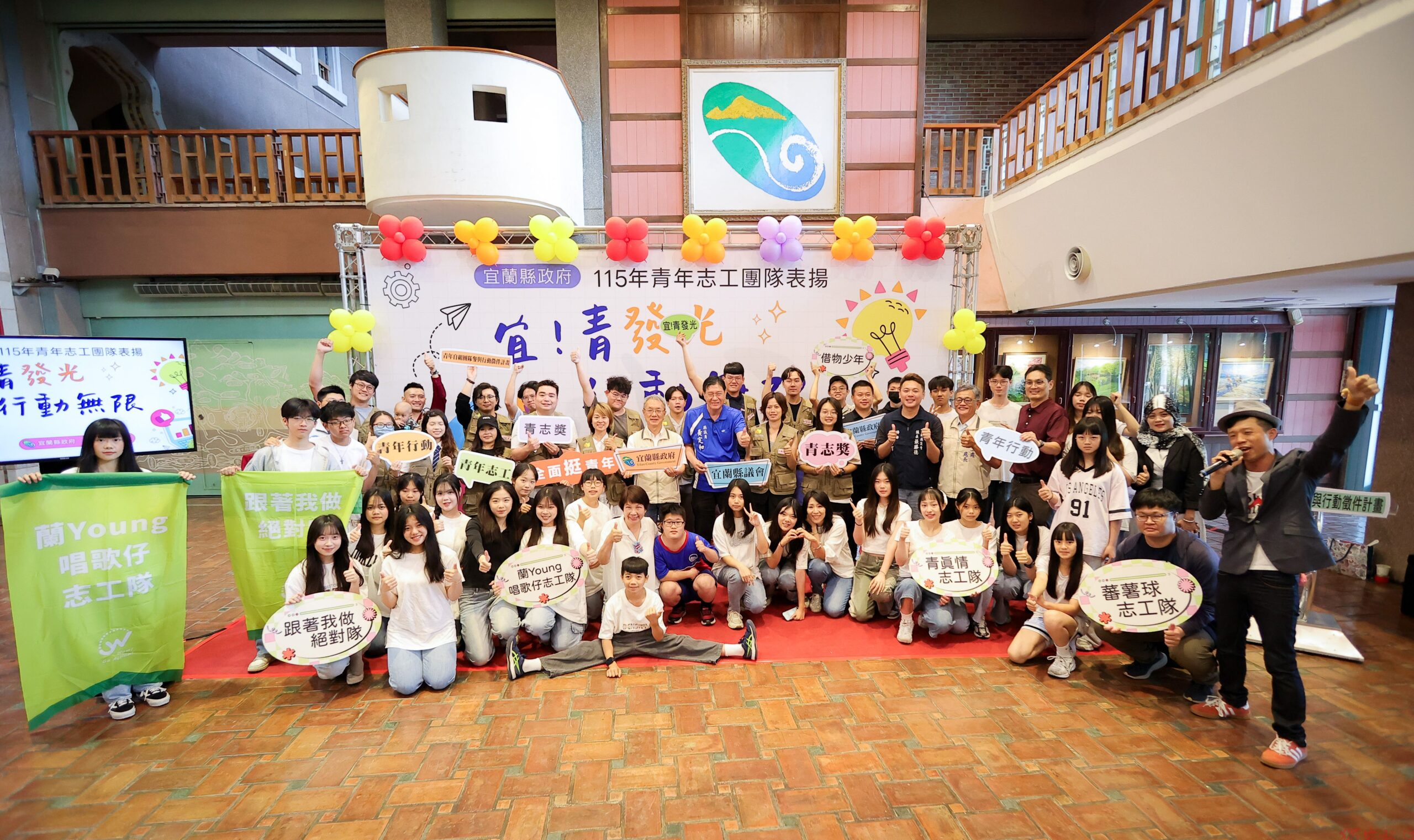 表揚活動由「蘭Young唱歌仔志工隊」帶來歌仔戲演出,代理縣長與青年互動,現場溫馨活潑。為持續鼓勵青年投入志願服務,縣府持續推動「115年青年自組團隊參與行動徵件計畫」,鼓勵3人以上自組團隊提出在宜蘭縣內行動方案,每案至少服務10小時,就有機會獲得行動獎勵金最高3萬元,預計招募10組團隊,總獎勵金30萬元。