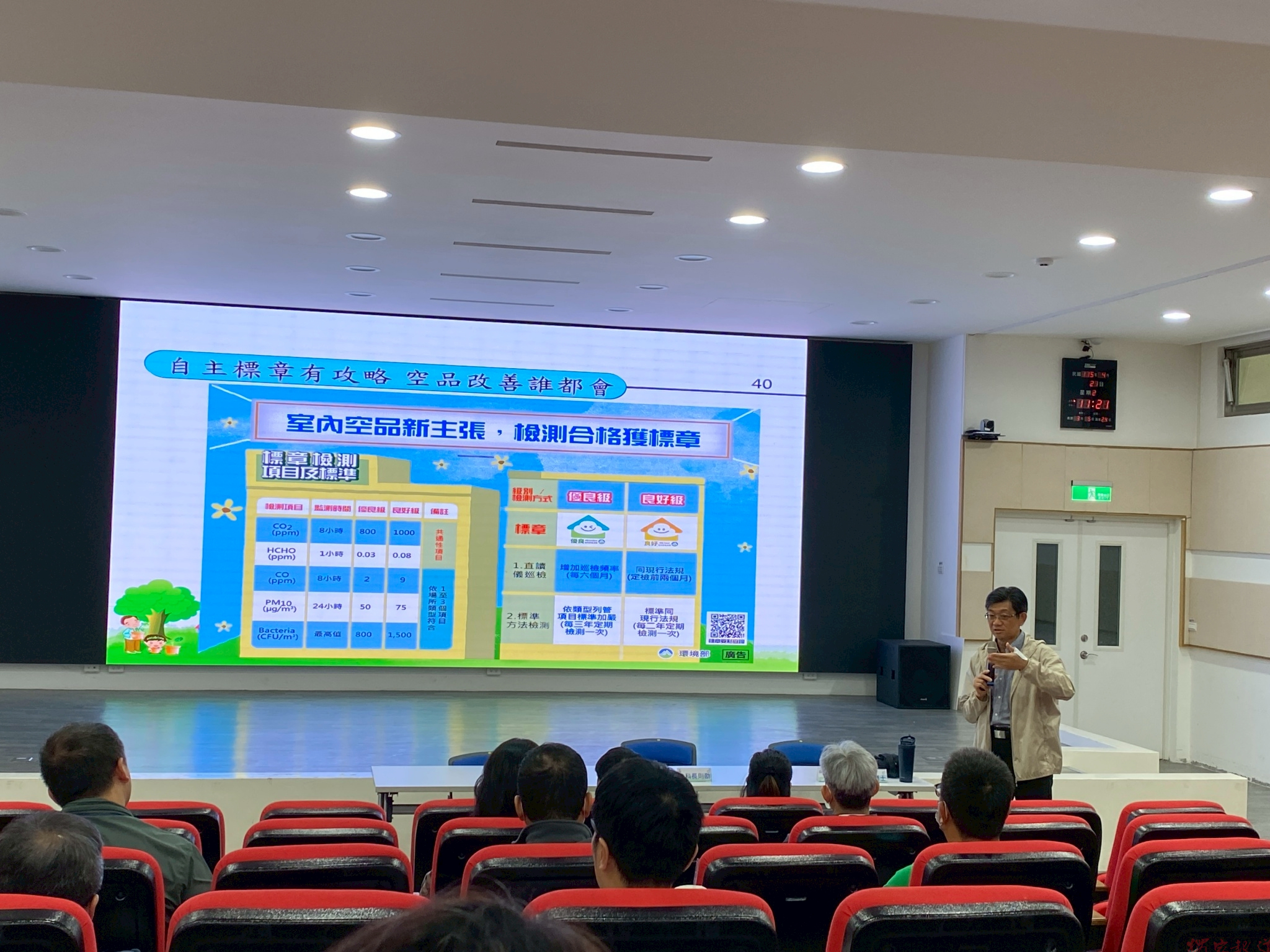 花蓮縣環境保護局昨(21)日舉辦「室內空氣品質自主管理宣導說明會」,特別邀請前大漢技術學院教授許文昌博士闡述室內空氣品質法規等,對象涵蓋公告場所、非公告場所及敏弱族群機構,以期提升室內空氣管理意識,維護民眾健康。