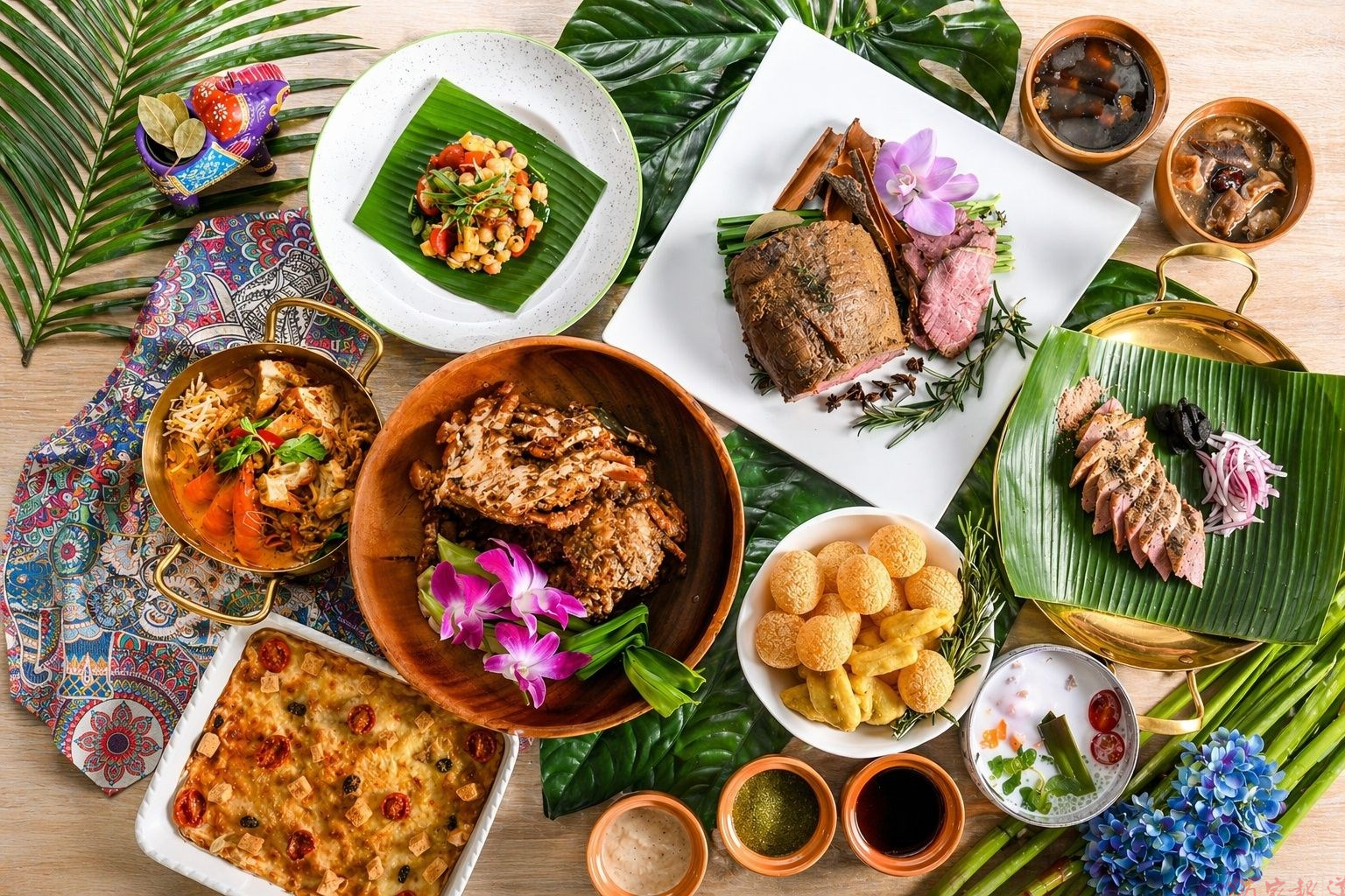 喜愛吃到飽的饕客亦有不同選擇,Checkers自助餐廳於母親節檔期推出「南洋香料盛宴」,以多元香料展現異國飲食風貌。主打料理包含以大量蒜末與印度香料醃製、慢火烤至外皮微酥、內裡柔嫩多汁的「拉賈斯蒜香烤羊腿」;以及加入黑胡椒、洋蔥與香料拌炒,辛香微辣並襯托出豬梅花油脂甜味的「果阿黑胡椒豬梅花」。湯品則有以白胡椒熬煮出濃郁辛香、豬肚軟嫩帶嚼勁的「馬來胡椒豬肚湯盅」,以及加入當歸、枸杞與多種中藥材燉製、入口微甘的「藥膳肉骨茶」。另有「帕尼普里脆球」、「炸香蕉」、「摩摩喳喳」等街頭小食及甜品增添用餐趣味。配合母親節檔期,5月9日至10日午、晚餐時段,每位1,280+10%元,不另加價可享全桌每位成人龍蝦免費招待,提升節慶聚餐亮點。